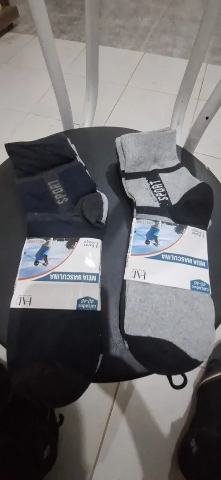 I wear size 46. They fit like a slim sock, without a cuff. A little tight on the ankle. Quality is 60%. For the price, it’s good for fishing, use once and throw away. R$ 13 for 6 pairs of socks, just right for the purpose. If washed, they should last too. Worth buying. Very fast delivery.