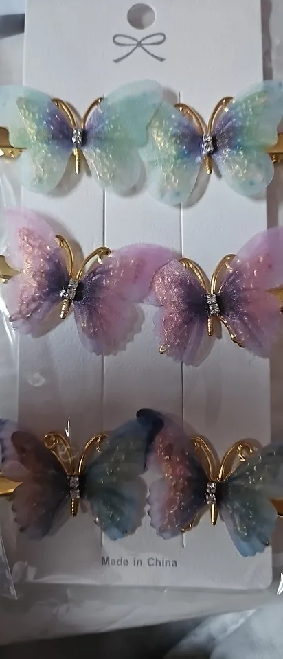 The hair clips are very beautiful. The wings are double-layered.