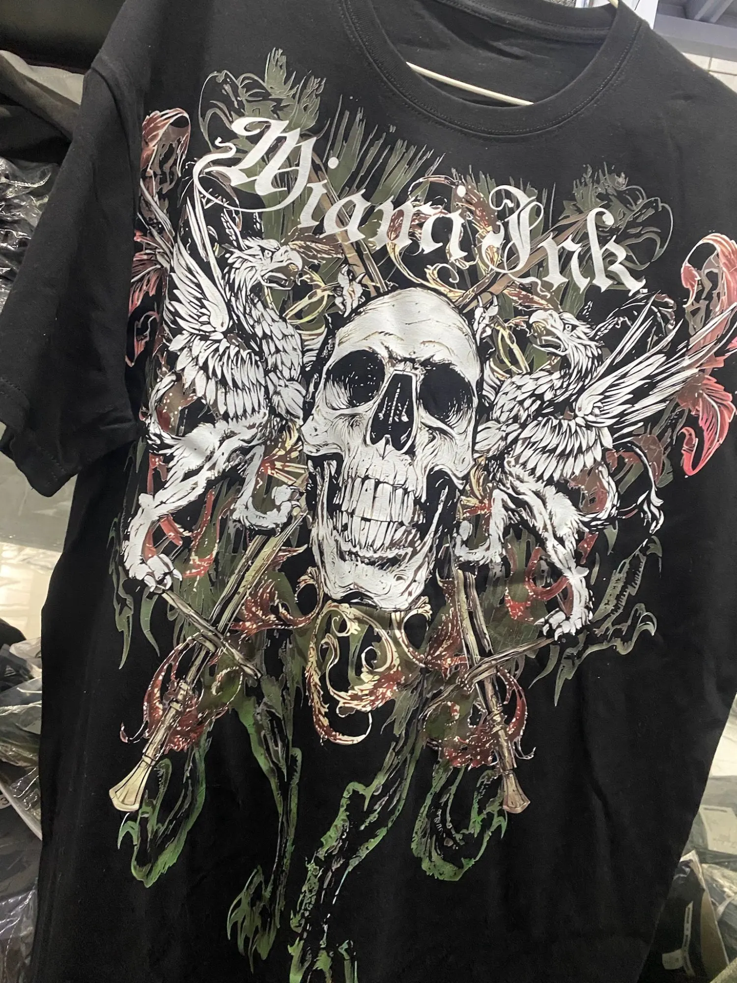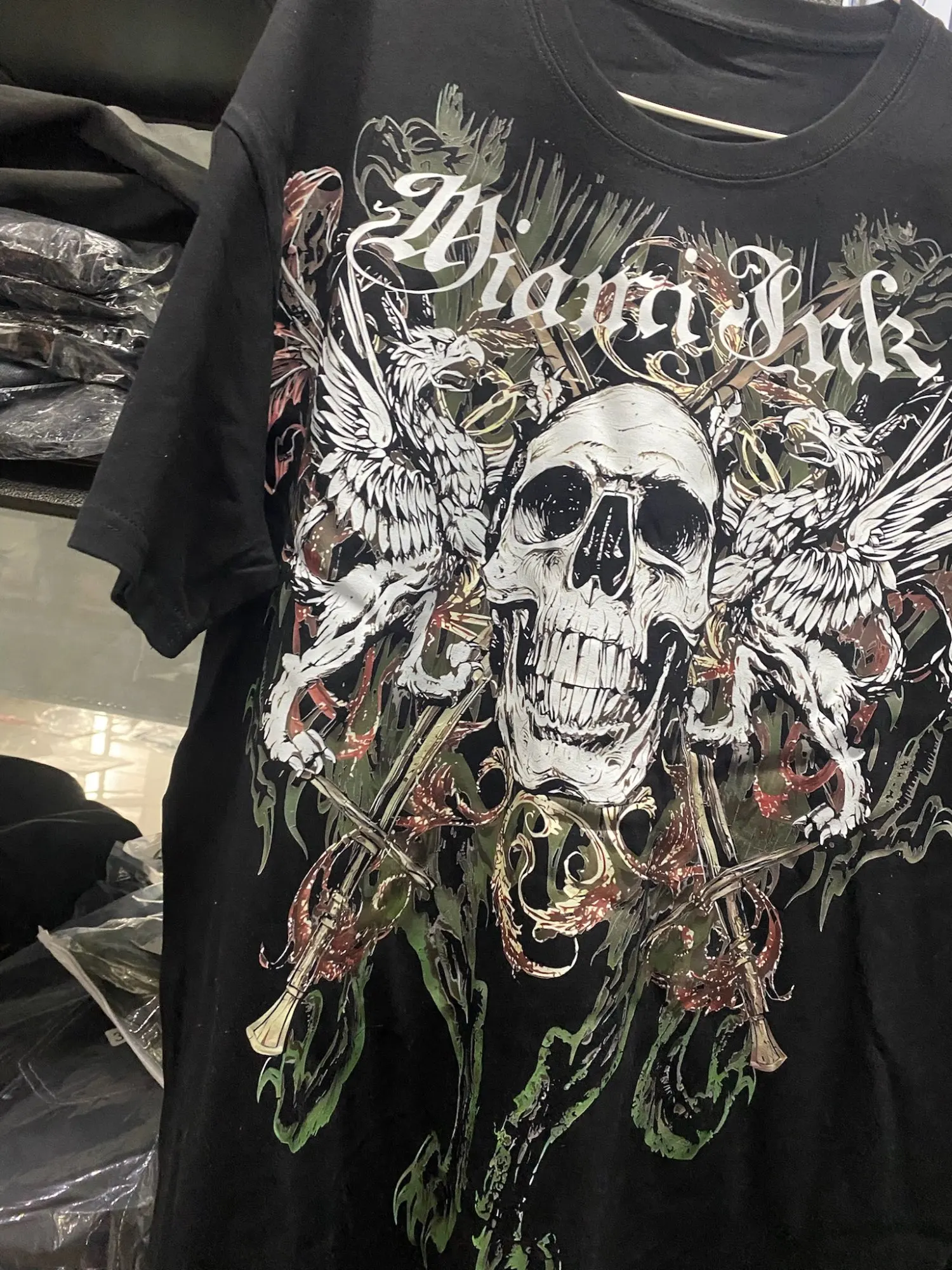 2000s American Suffering Trendy Retro Fashion Print Round Neck Short Sleeved T shirt Women Y2K Street Style Gothic Couple Sports