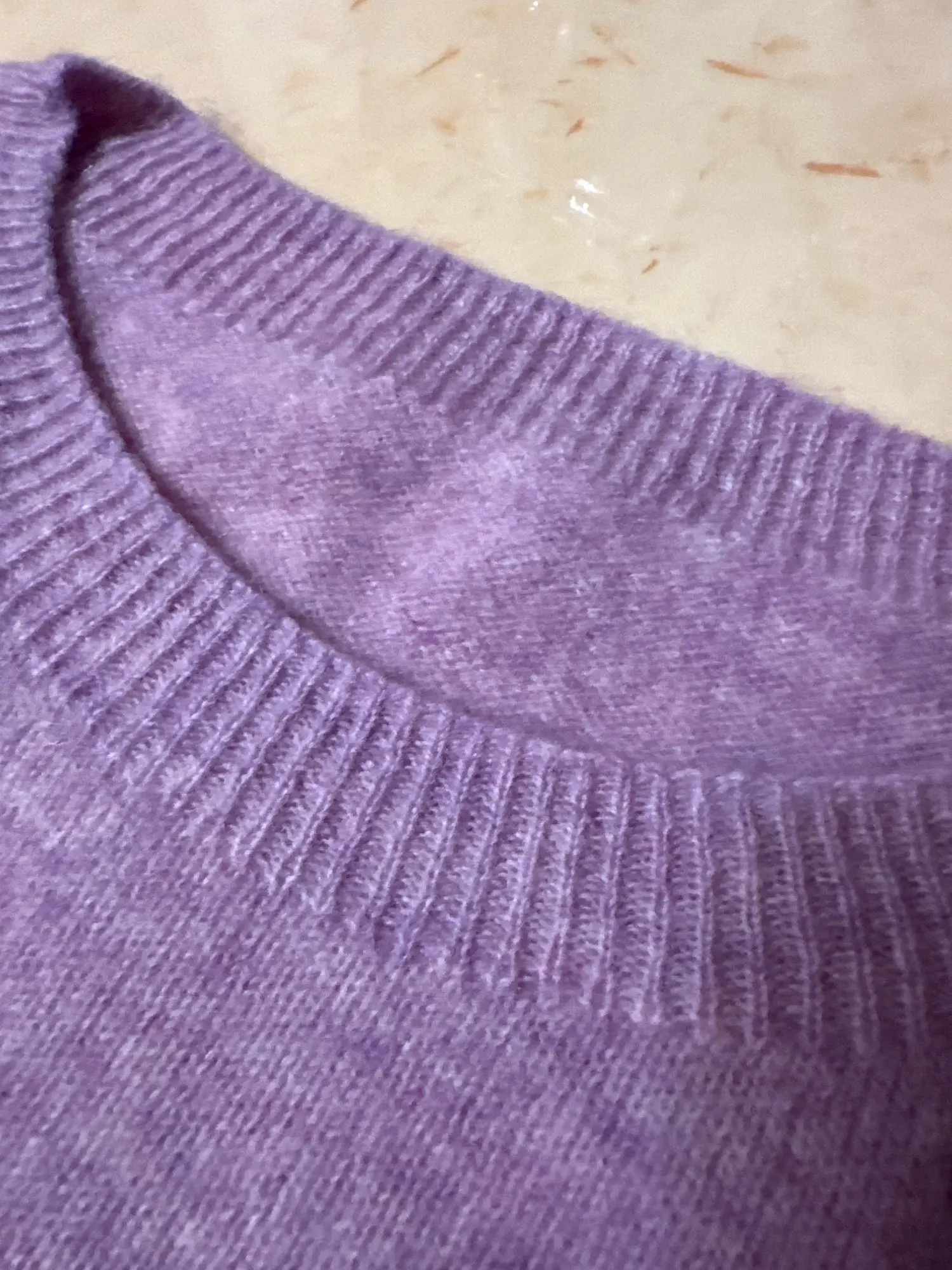This is a lovely wool jumper, even softer and fluffier after a wash. high quality knit, i recommend without hesitation.
