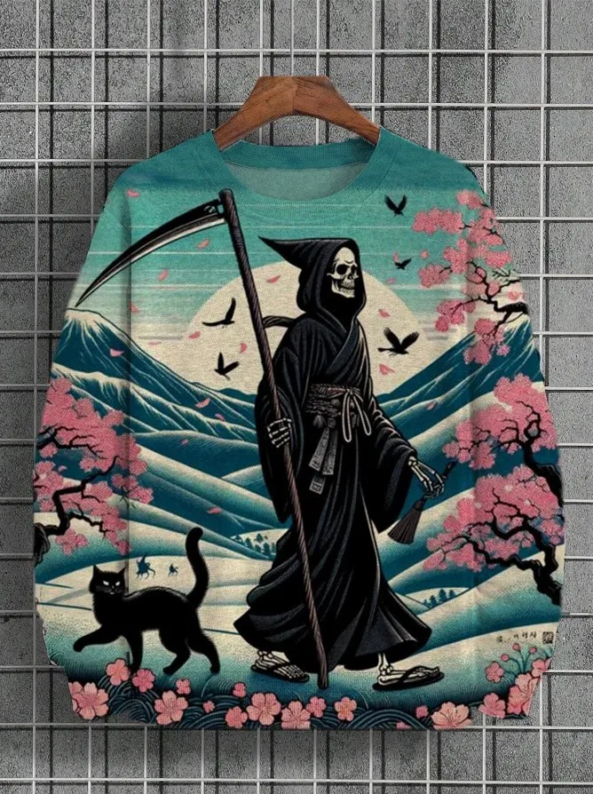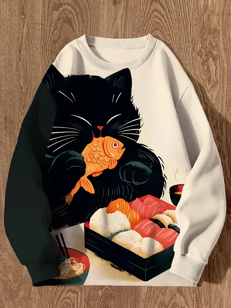 2025 Men’s Animal Cat Sweatshirts Long Sleeve Sweatshirt O-Neck Fashion Cool 3D Printed Japanese Art Prints Casual Sweatshirts
