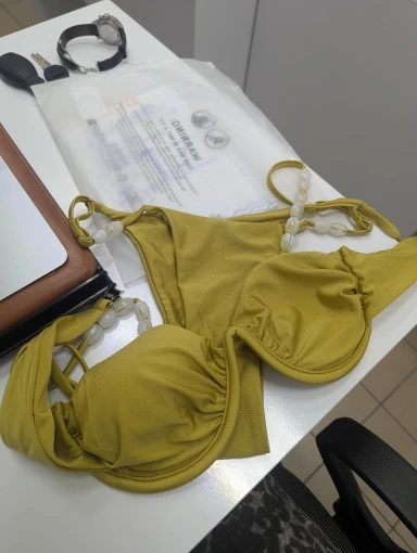 Beautiful color, as in the seller’s photo. Corresponds to the size chart. For parameters 80B – 70 – 98, size M fits. For my height of 155 cm, the swimming trunks are perfectly sized.