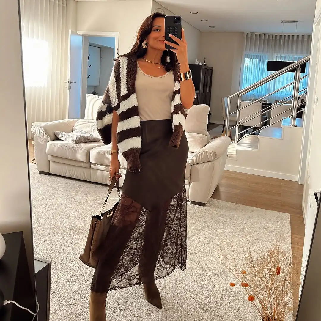20 reviews for 2025 Sexy Lace Patchwork Skirt Women Elegant See-through Long Skirts Casual Lady New Party Summer Evening Street Daily Midiskirt