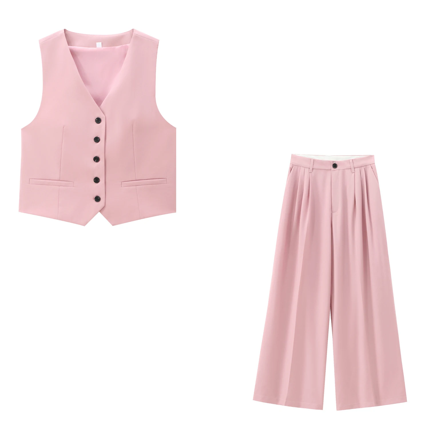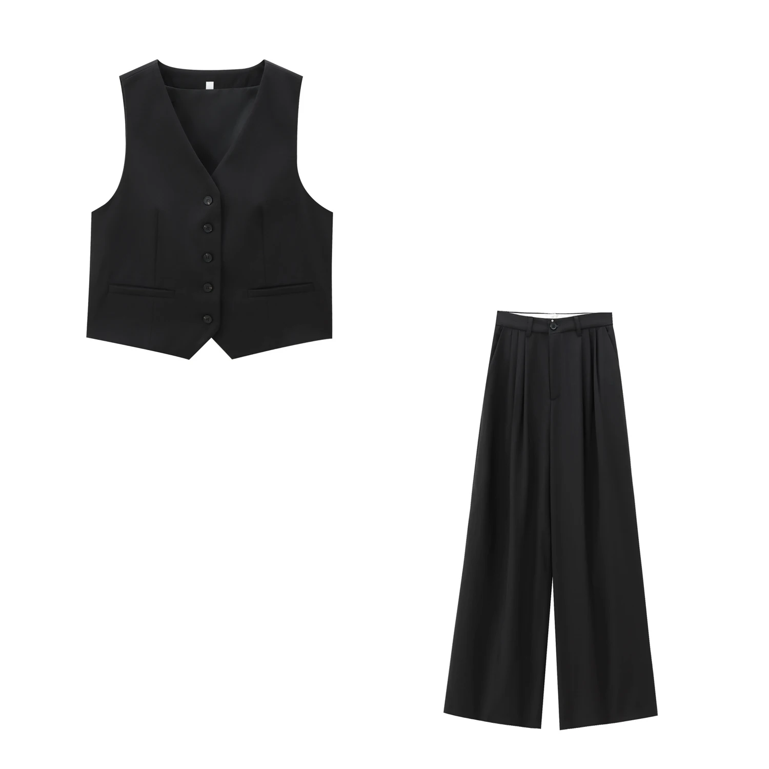 2025 Spring and Autumn New Two Piece Set Wide Leg Pant Suit Work Office Vest Top+Double Fold Pants Women’s Fashion Set
