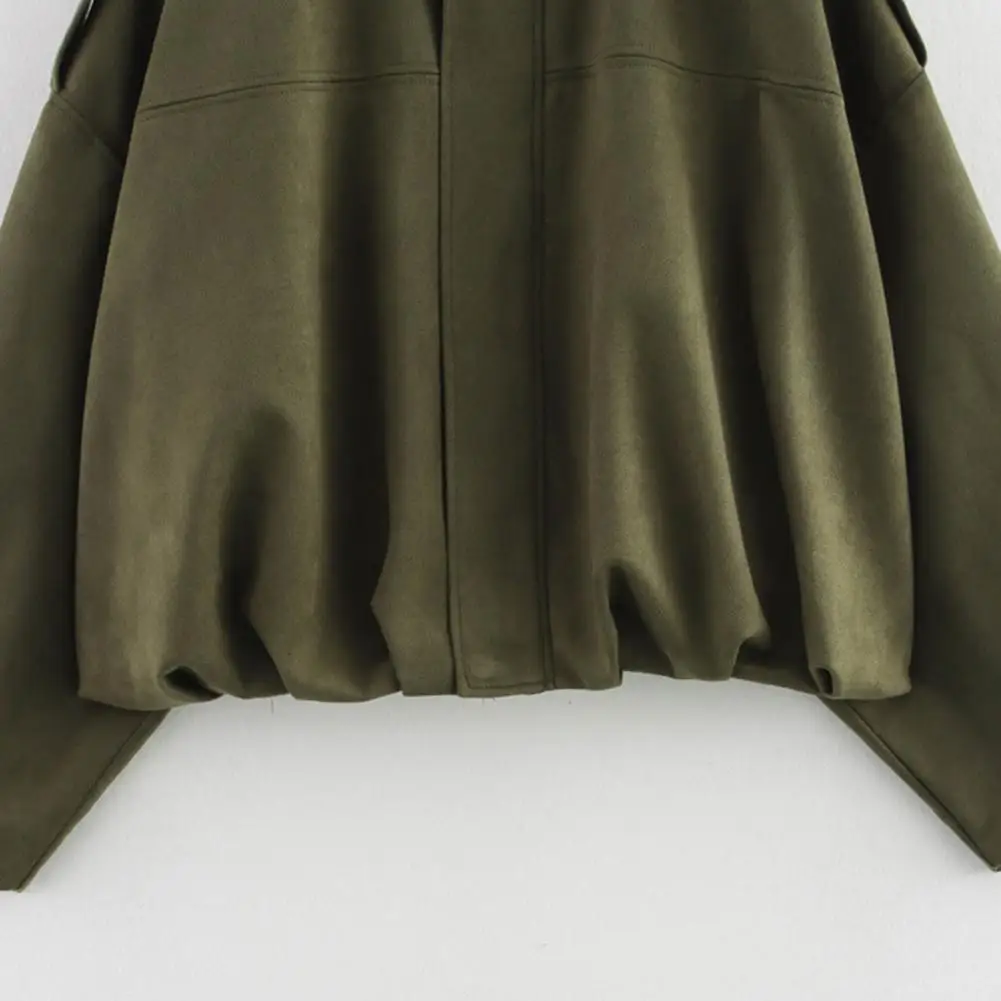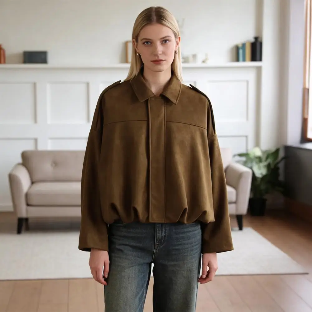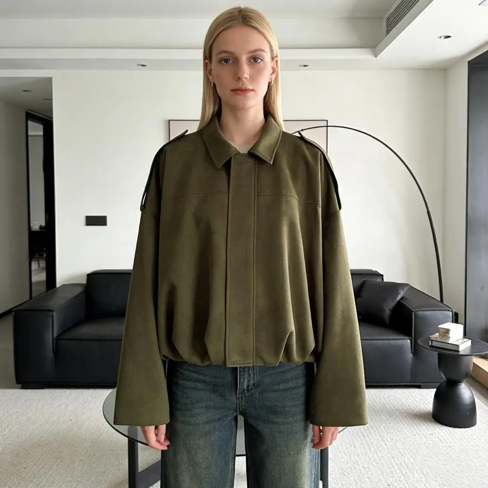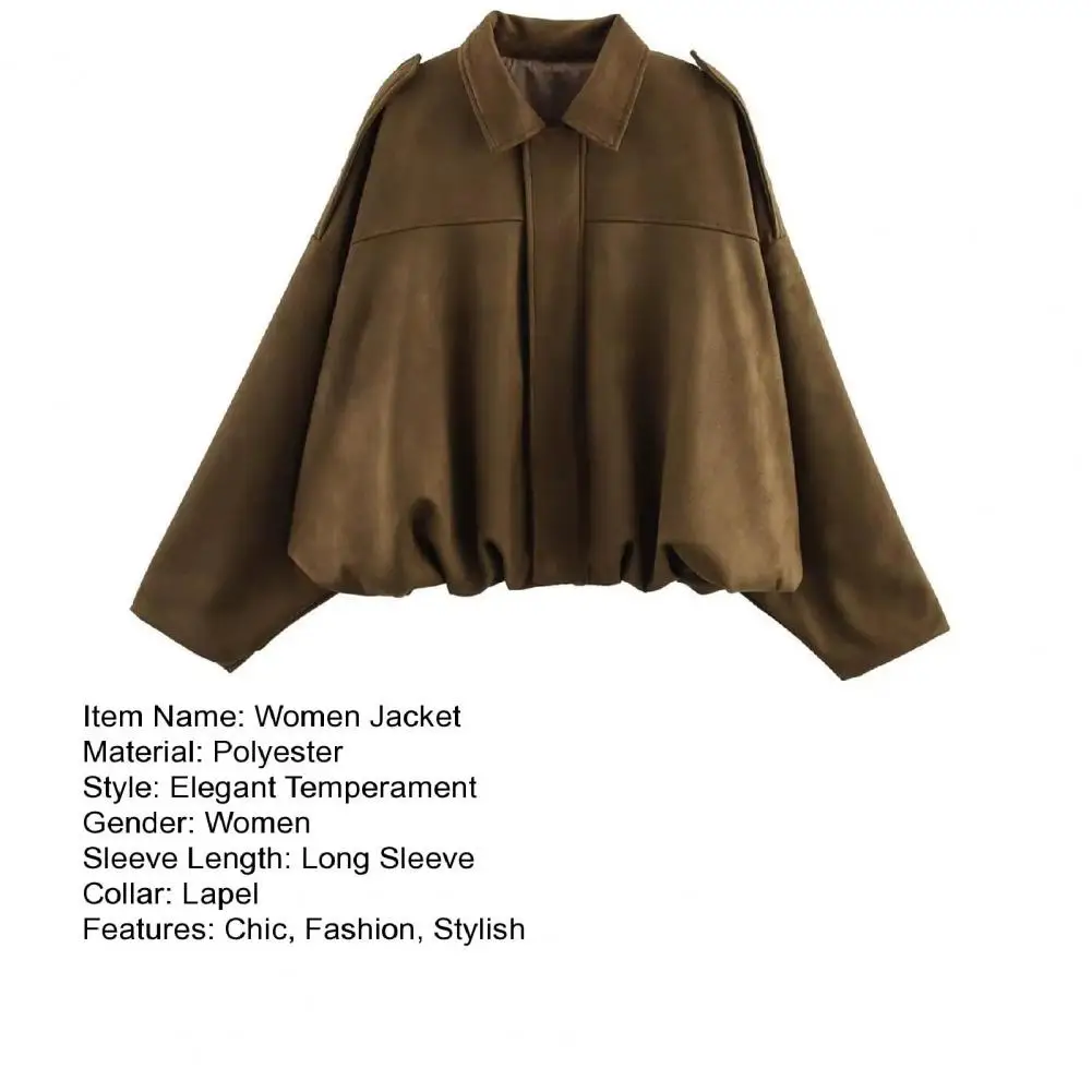 Women's Faux Suede Jacket Oversized Long Sleeve Lapel Pilot Coat Casual Zip Up Snap Coat Fall Spring Outerwear
