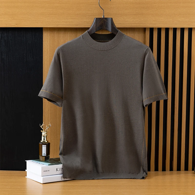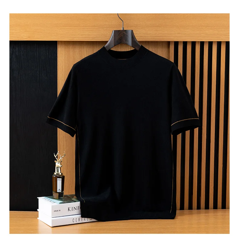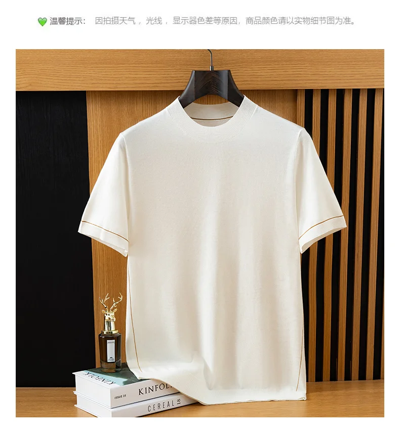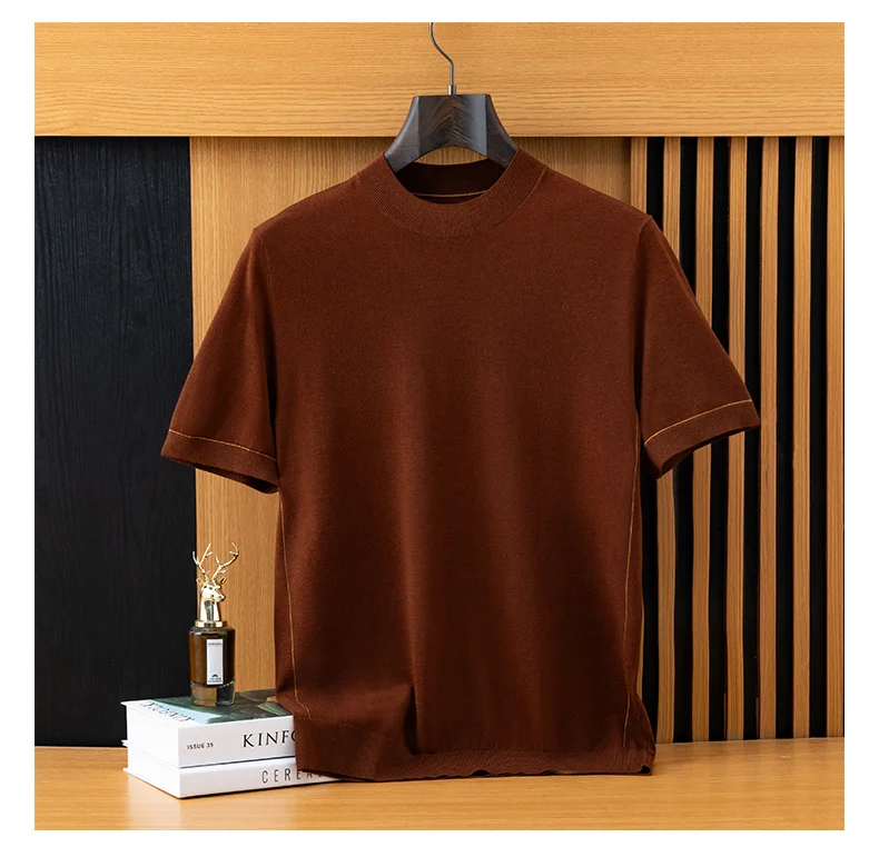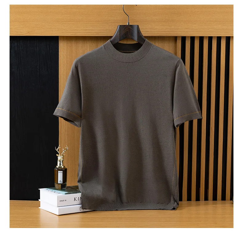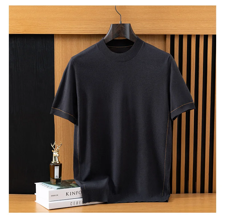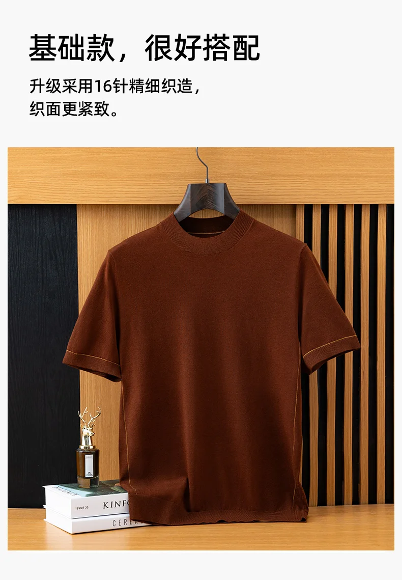*12 needle thick fabric, medium thickness. Ordinary version, Short sleeved round neck design,Businesscasual style. Pairing: This wired knit sweater can be paired with any clothes and shoes in the wardrobe, such as jeans, casual pants, suit coats, leather shoes, casual shoes, or sneakers. It is a classic pairing that combines business and leisure.