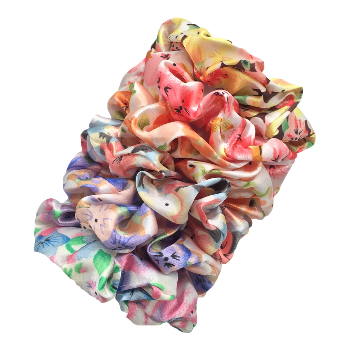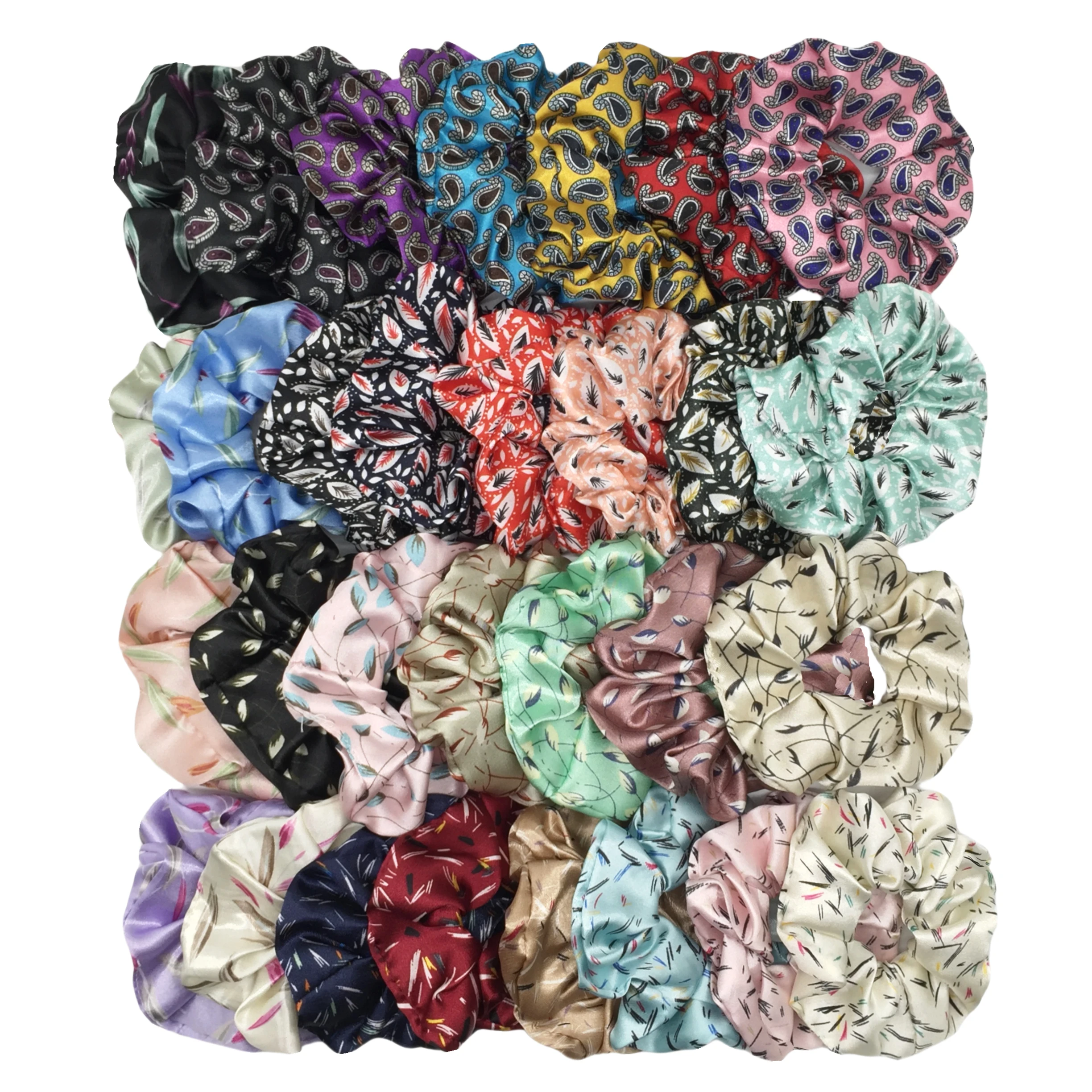 6pcs/lot Satin Scrunchies Fashion Women Accessories Print Ditsy Floral Elastic Hair Band Ponytail Holder Tie Rubber Leopard Cute