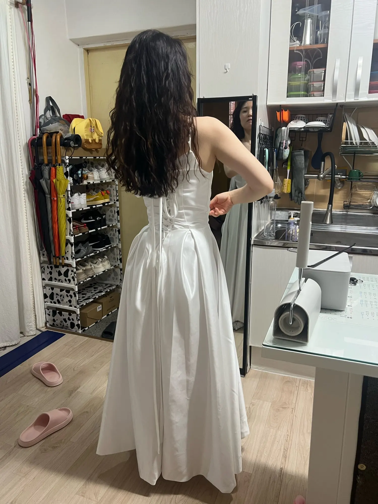 1 review for A-Line V-Neck Wedding Dress with Pearl Straps for Wedding Customized