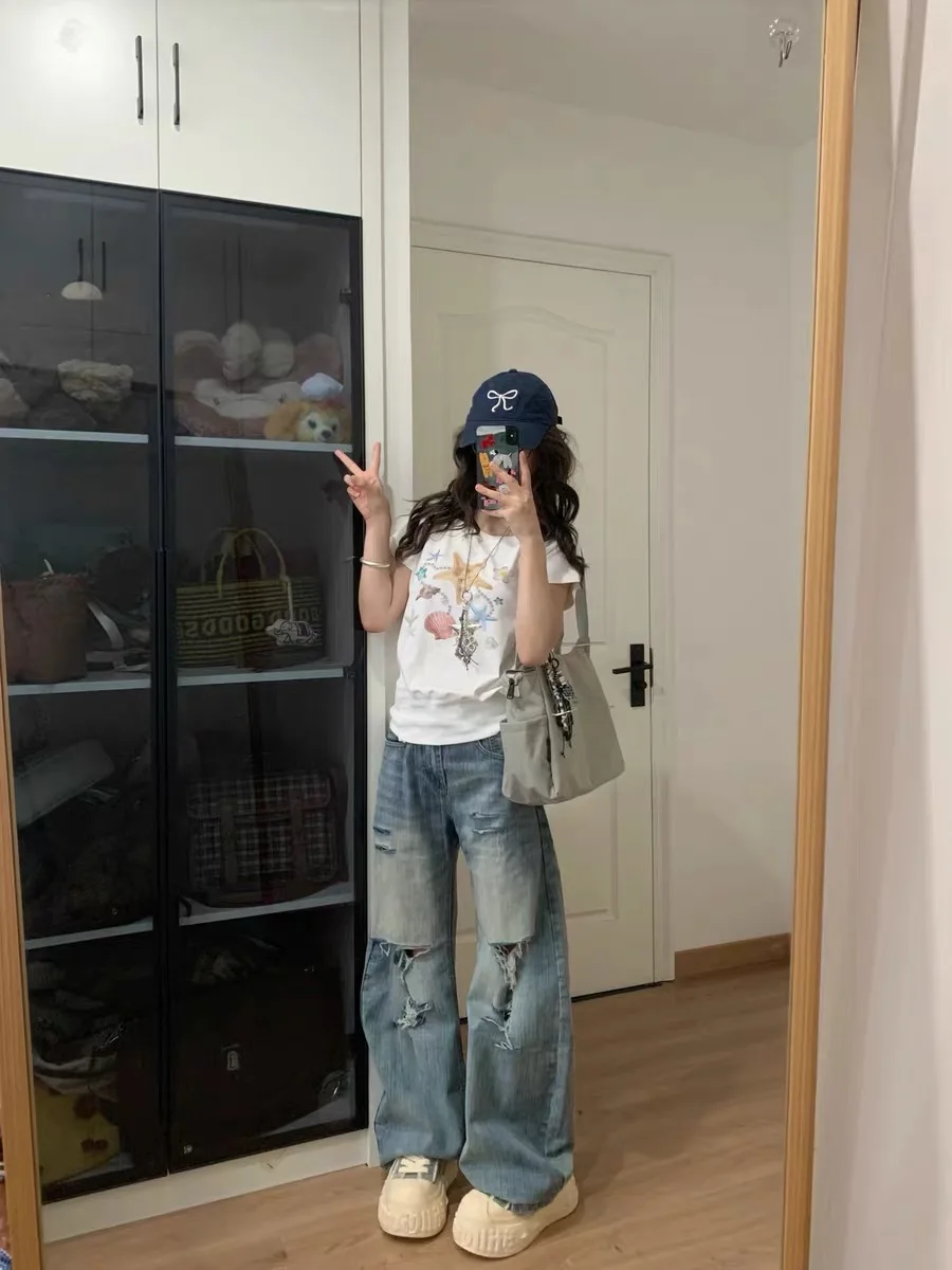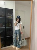 It’s not as wide-fit as in the photo but slightly straighter. It’s great that there’s a waist adjustment button. I’m 165cm tall and weigh 57kg; the length isn’t too tight. I chose the largest size well. I’m completely satisfied at this price.