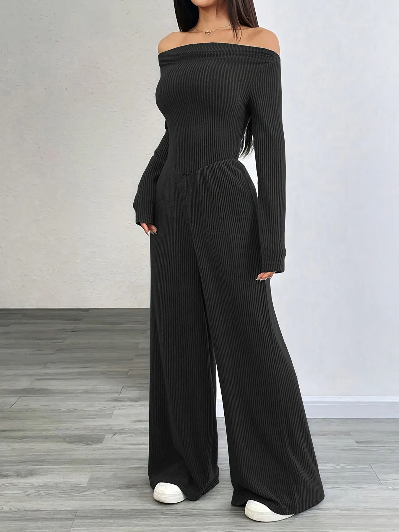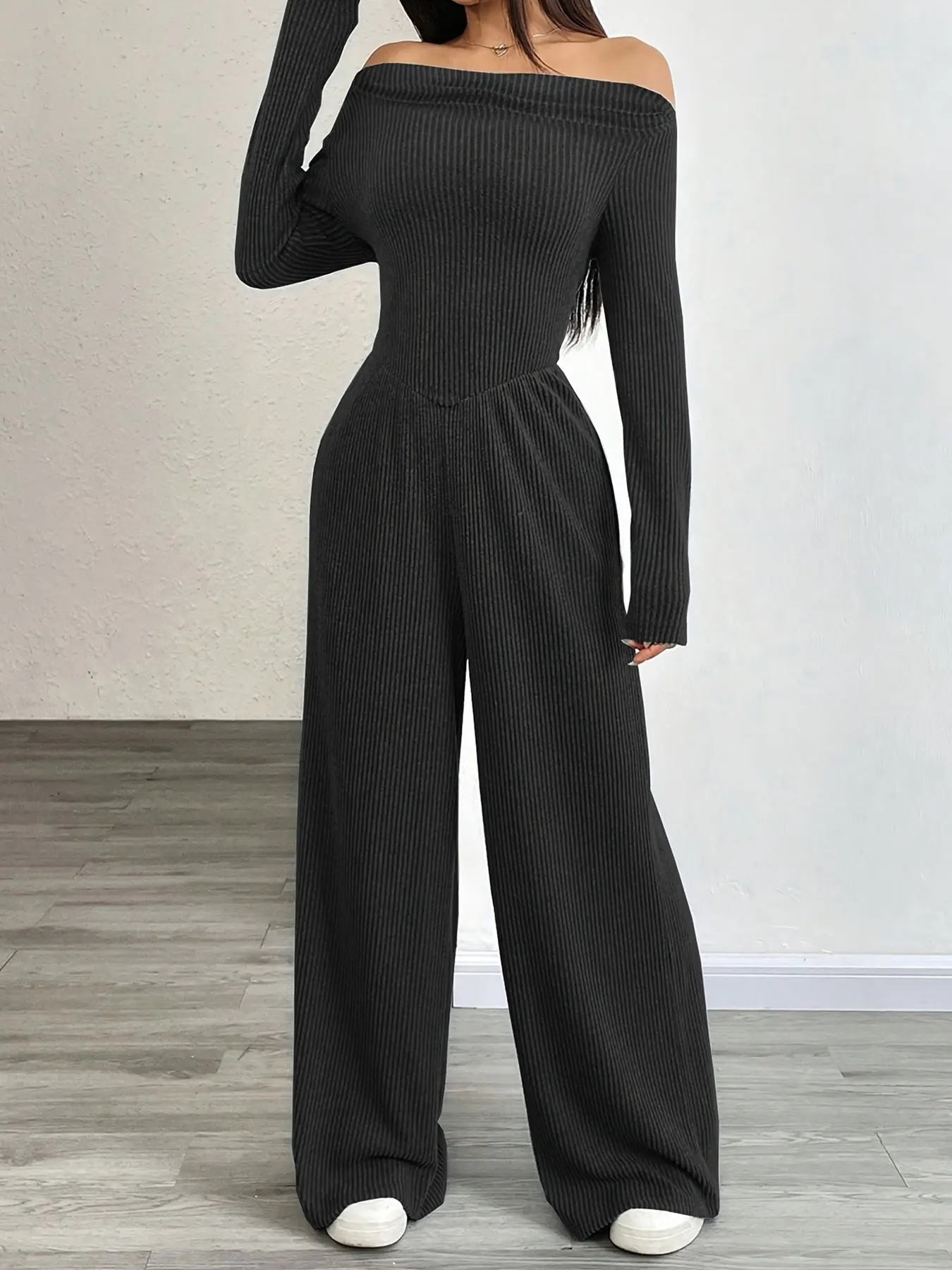 5 reviews for AODEBIAO Knitted Autumn Winter Jumpsuits Women Long Sleeves Black Fashion Rompers Female Slim Off-shoulder Casual New Jumpsuits