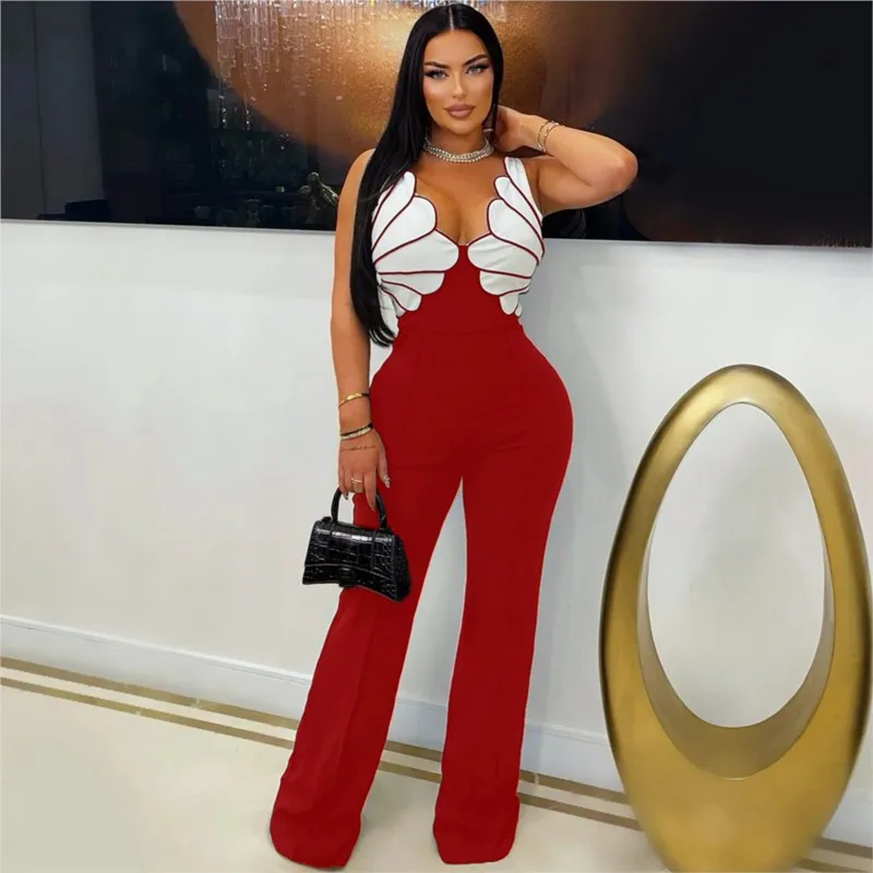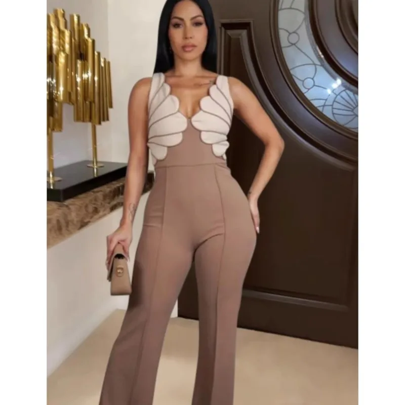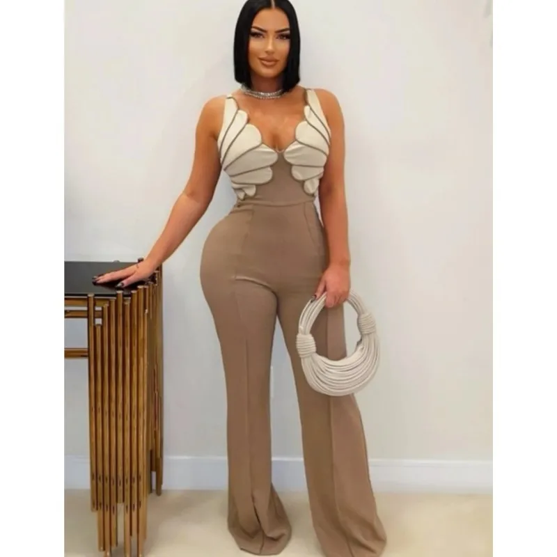 Beyprern Beautiful Shell Details Jumpsuit Women Sleveeless Details Palazzo Jumpsuit Wide Leg Pants Set Overalls Sexy Clubwear