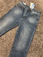 The jeans are great quality with a mid-rise fit.