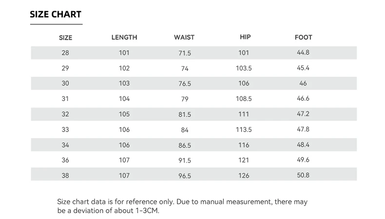 | size_info | {"sizeInfoList":[{"length":{"cm":"101", "inch":"39.76"}, "size":"28", "vid":-1}, {"length":{"cm":"102", "inch":"40.16"}, "size":"29", "vid":-2}, {"length":{"cm":"103", "inch":"40.55"}, "size":"30", "vid":-3}, {"length":{"cm":"104", "inch":"40.94"}, "size":"31", "vid":-4}, {"length":{"cm":"105", "inch":"41.34"}, "size":"32", "vid":-5}, {"length":{"cm":"106", "inch":"41.73"}, "size":"33", "vid":-6}, {"length":{"cm":"106", "inch":"41.73"}, "size":"34", "vid":-7}, {"length":{"cm":"107", "inch":"42.13"}, "size":"36", "vid":-8}, {"length":{"cm":"107", "inch":"42.13"}, "size":"38", "vid":-9}]} |