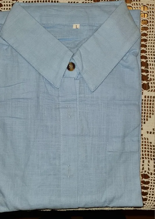 Literally, i am delighted with the shirt! The color, in real life, is unreal beautiful! Beautiful shade of blue! The quality is exceptional, the material is suitable for combinations with various other materials. The measurements are impeccable, the buttons are high quality, perfectly made. Great respect and recommendation from the heart for the seller!