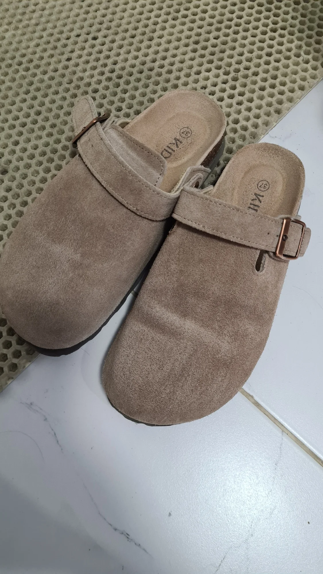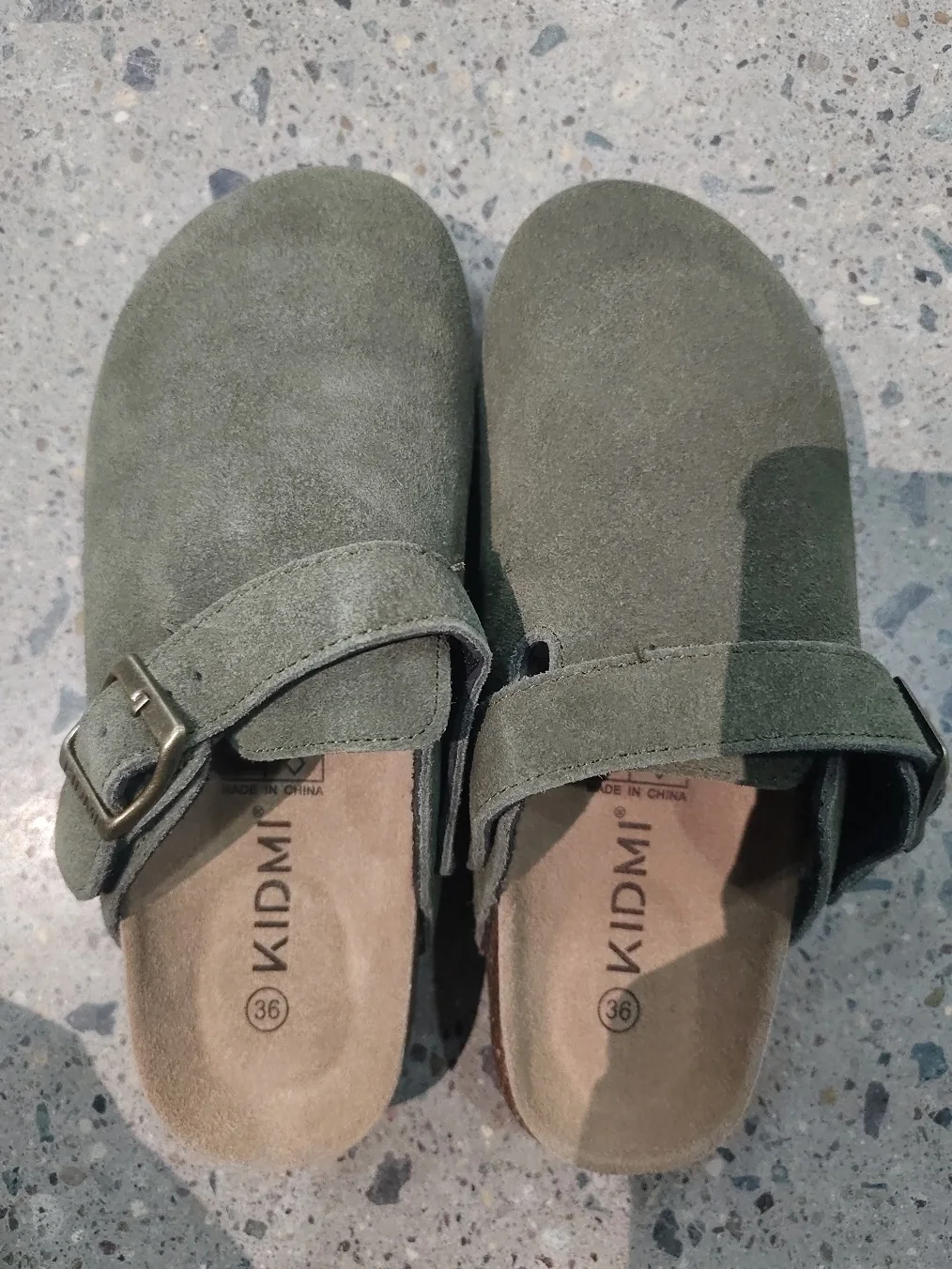 Crestar Women Cow Suede Clogs Cork Footbed Leather Mules Lady Outdoor Comfort Arch Support Potato Shoes With Adjustable Strap
