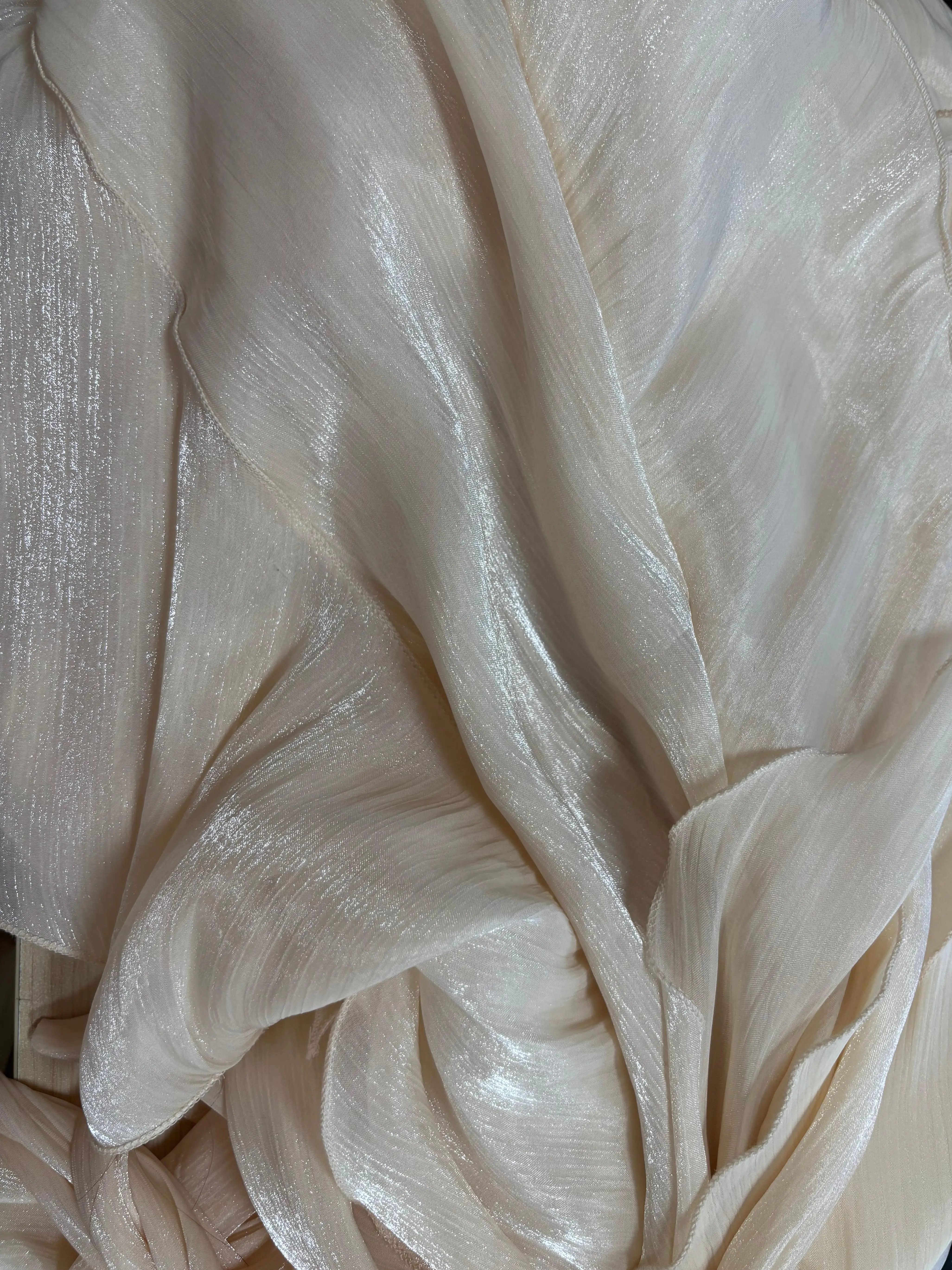 The fabric is gorgeous! It has a subtle shimmer that makes it look really pretty, and it is so soft to the touch. The seller was also super nice and helpful. Definitely recommend! !