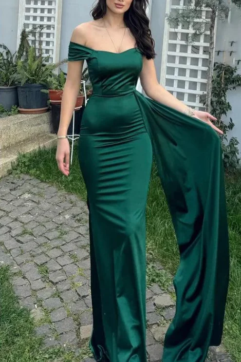 5 reviews for Emerald Green V-Neck Bridesmaid Dresses off the Shoulder Satin Mermaid Side Long Ribbon Trailing Skirt Slim Fit 2025 Customized