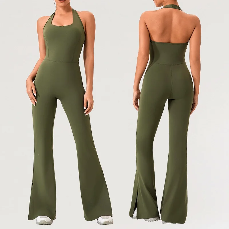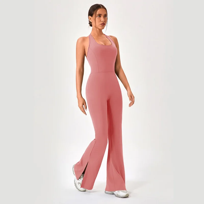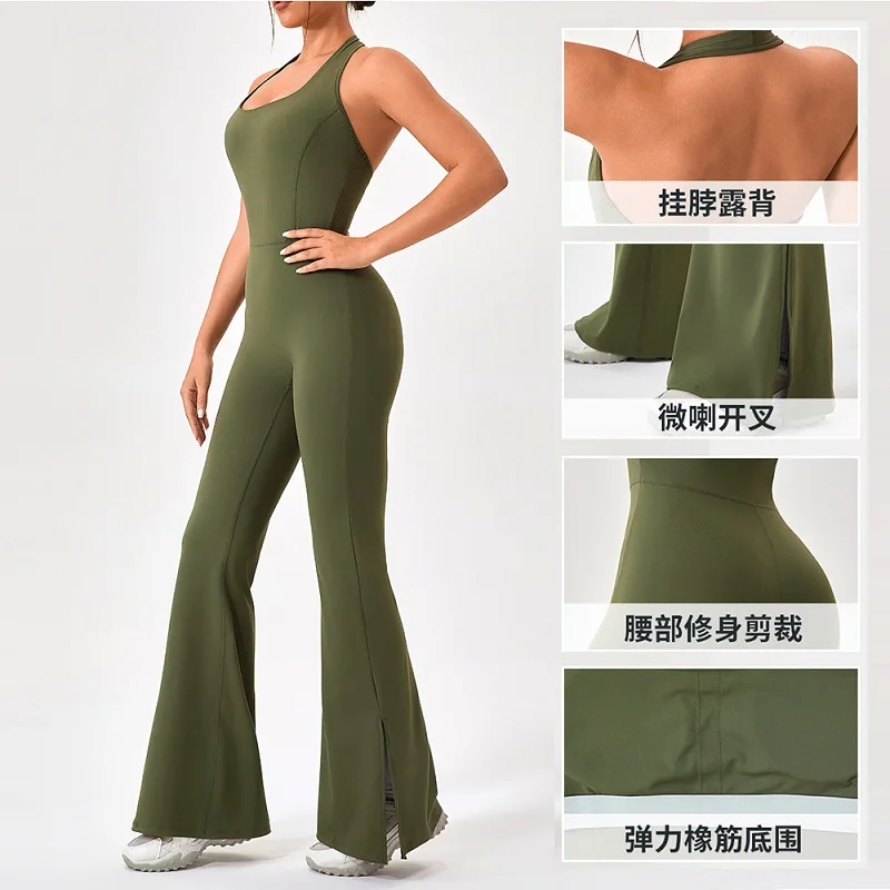 European American Yoga Wear Flared Pants Women’s Y2k Nude Tight-Fitting Dance Fitness Wear Hip-Lifting Exercise Running Jumpsuit