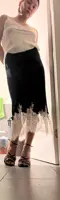 16 reviews for Fairy Lace-Trim Satin Midi Skirt High Wasit Elegant Wrapped Hip Long Skirts Party 2025 Fashion Trends Summer Women Clothing
