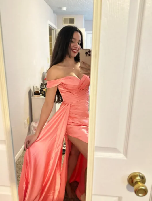 3 reviews for Findthat Women’s Bridesmaid Dress for Wedding Off Shoulder Satin Ruched Evening Party Gowns High Slit with Side Train Customized