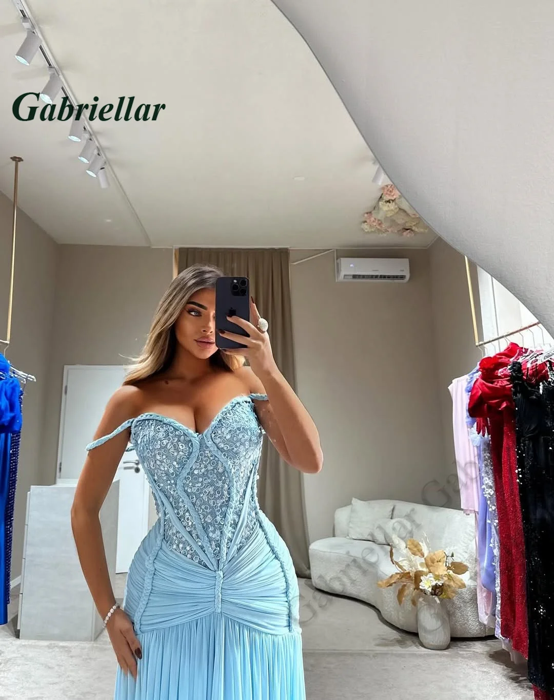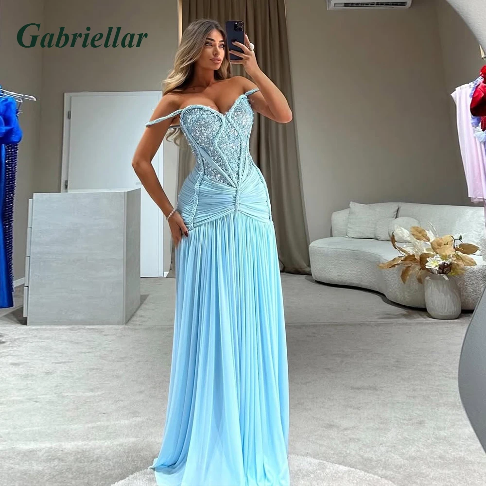 Gabriellar Classic Sweetheart Off the Shoulder Celebrity Dress Kuwait Formal Party Maxi Gown for Women Sequins A-line Customized