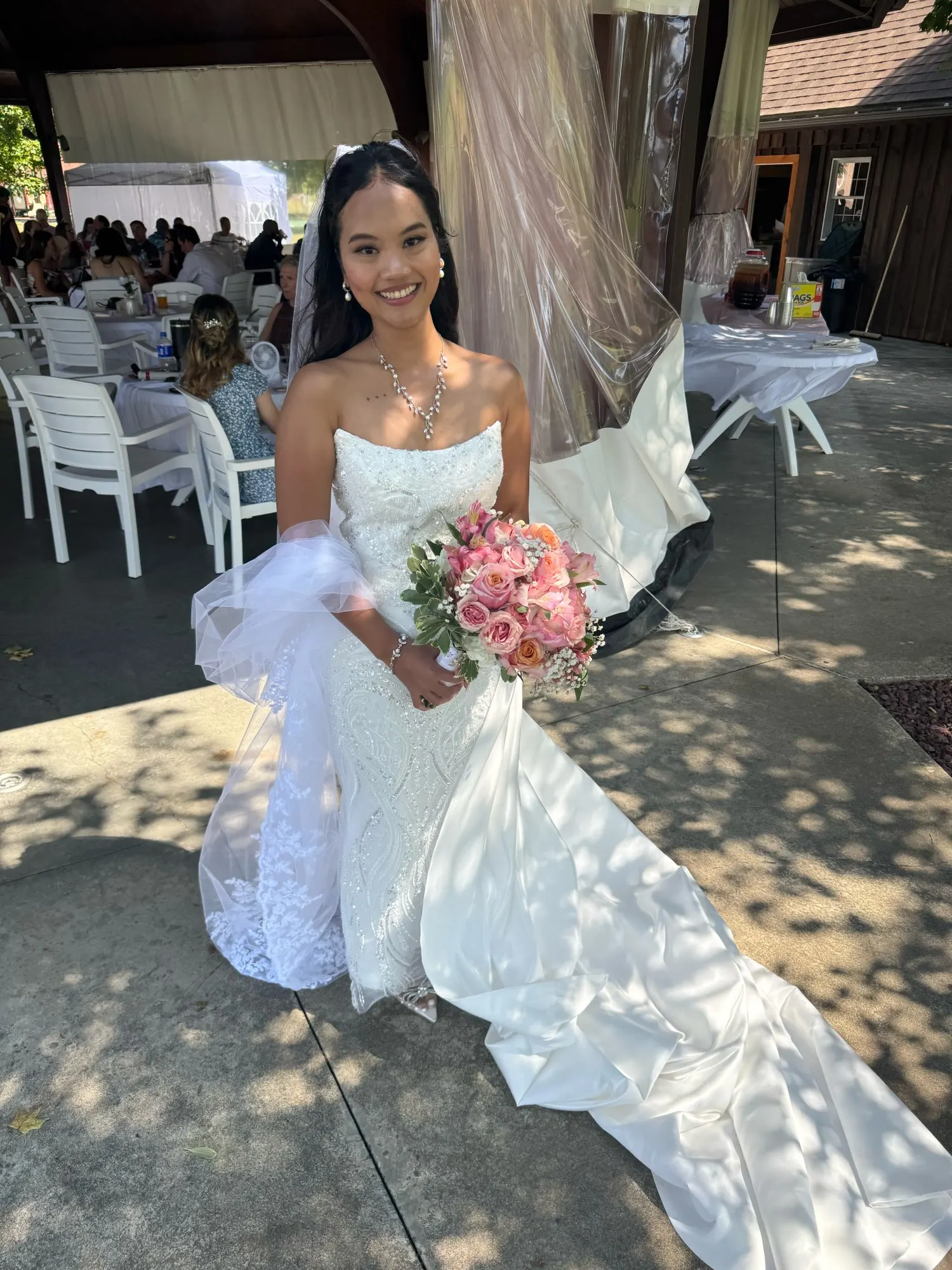 The seller was very patient with me. I asked lots of questions. The dress is exactly what i wanted it to be. It’s very beautiful. The shipping took a very short time. Thank you so much!