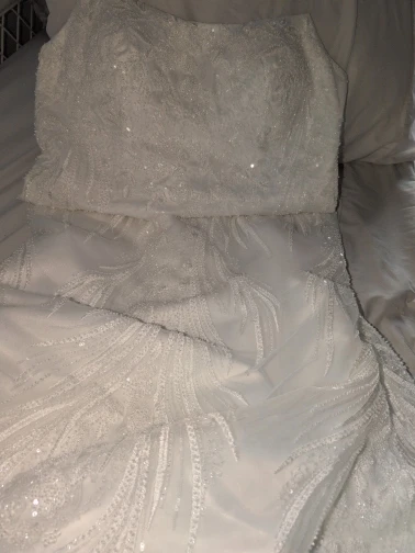 This dress is beautiful and such great quality. I sent my measurements and the dress fits perfect. It was shipped quickly as well. I would definitely recommend this seller to anyone looking for a beautiful dress for their wedding day.