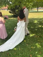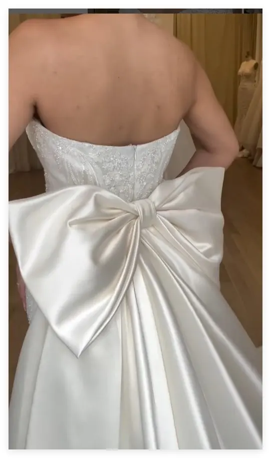 The dress is very beautiful and good quality i’m so so happy about my purchase. I was hesitant but i’m very glad i went for it! I was impressed by the quality of the dress, then i saw the skirt and the bow 🥹 🥹 Sooo pretty and high quality material. Thank you so so much! I’m not sure about the fit yet since i didn’t buy it for me, but it already looks like it’s gonna work great!! Thank you again!
