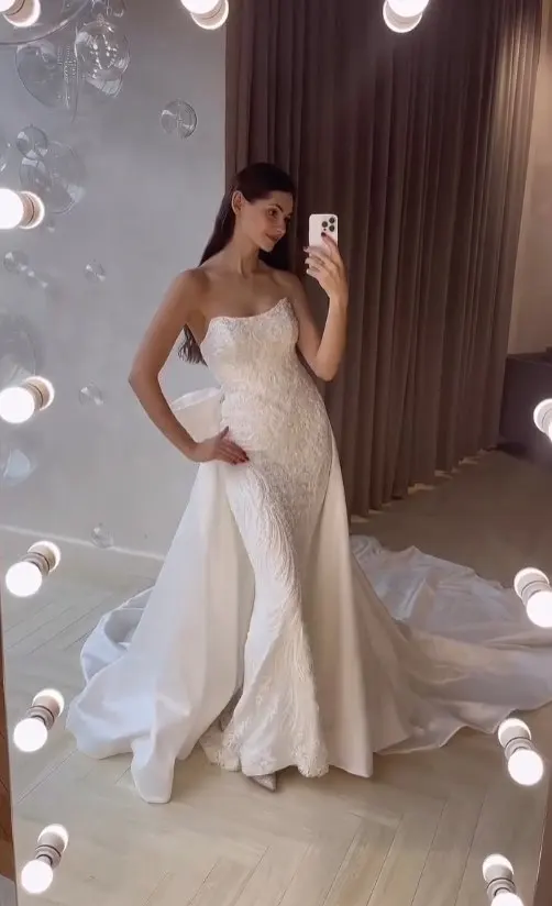 Gelinlik Boat Neck Mermaid Wedding Dresses with Dechable Train Sequined Beading Luxury Vestidos De Novia Vintage Bridal Gowns
