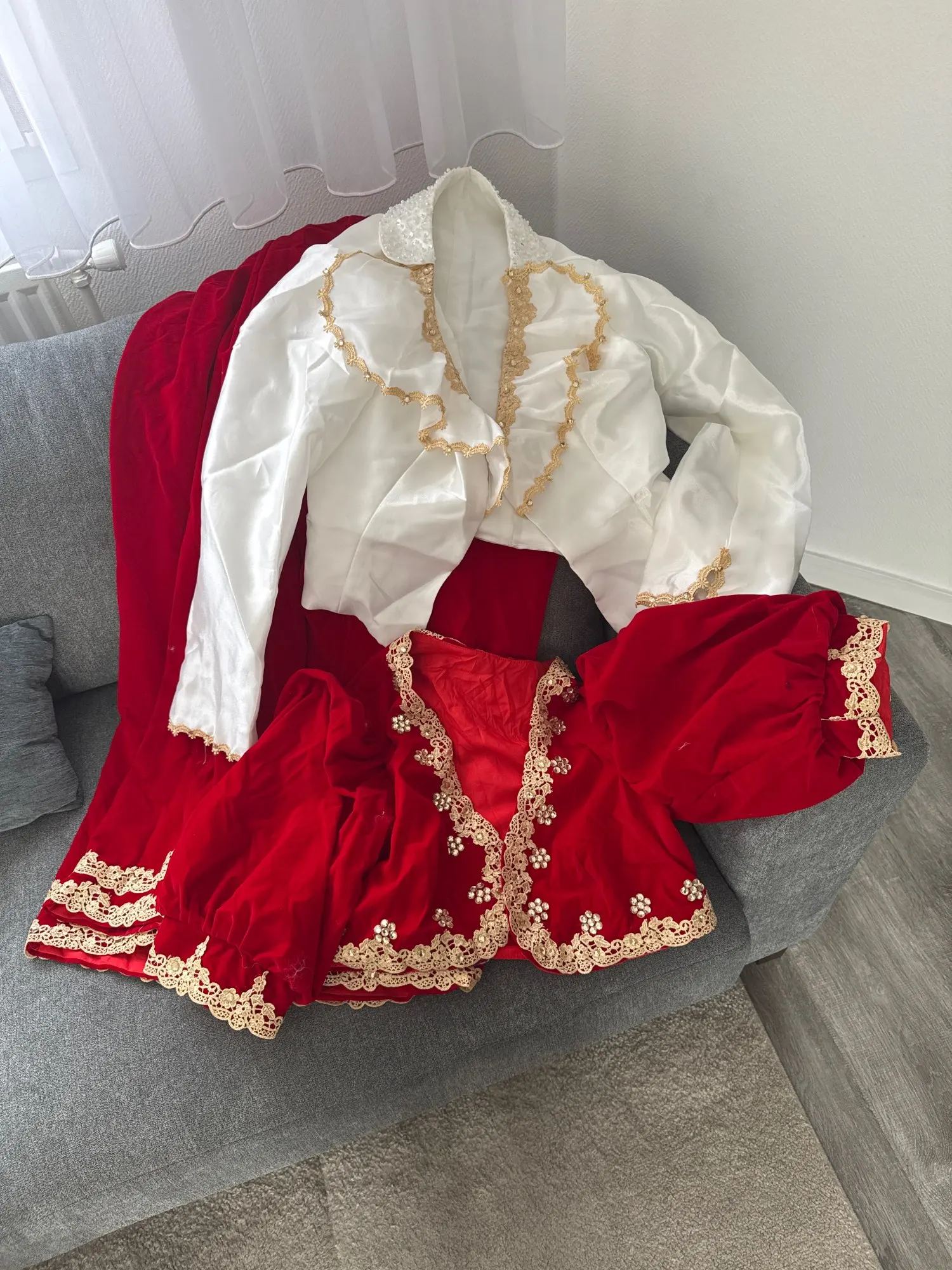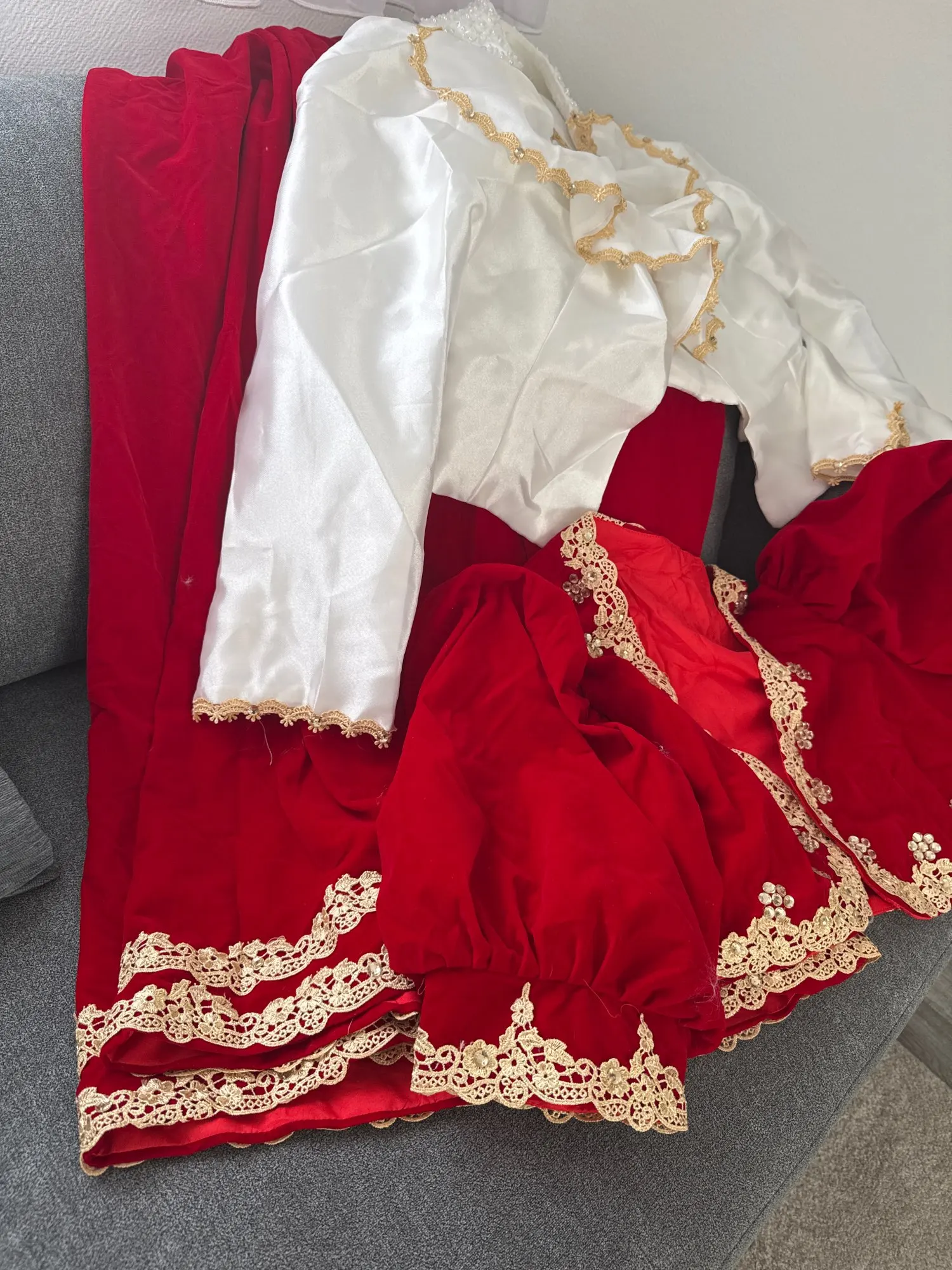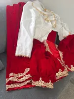1 review for Gold Red Vevlet Arabic Evening Occasion Dresses with Long Sleeve 2025 Customsized Albanian Kosova Ankle Length Prom Gown