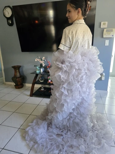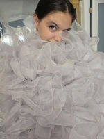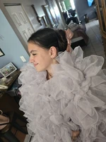 4 reviews for Gorgeous silver organza Jacket Women Full Sleeves Dresses Ruffles Floor Length Long Robe Dress To Photoshoot custom size color