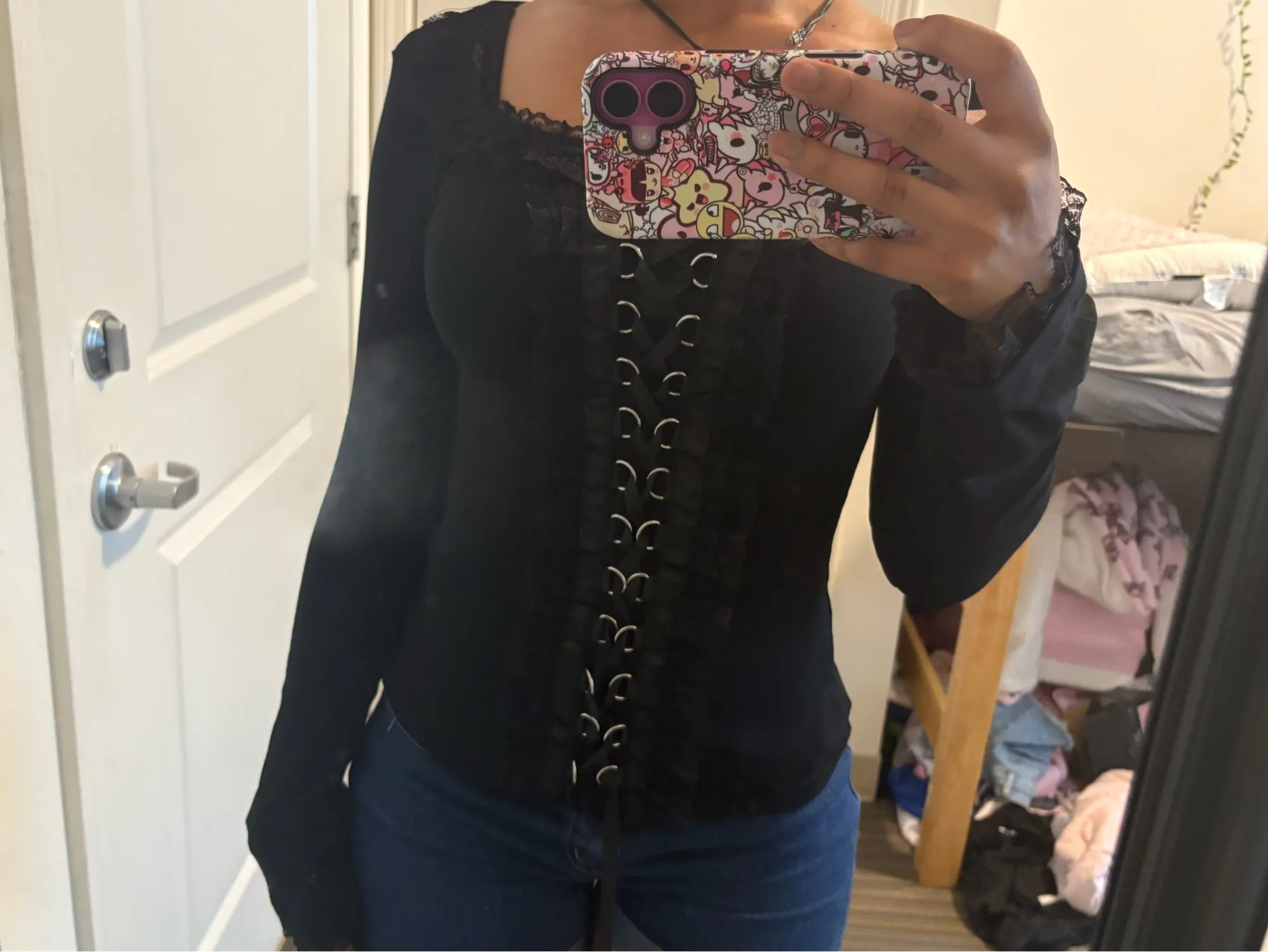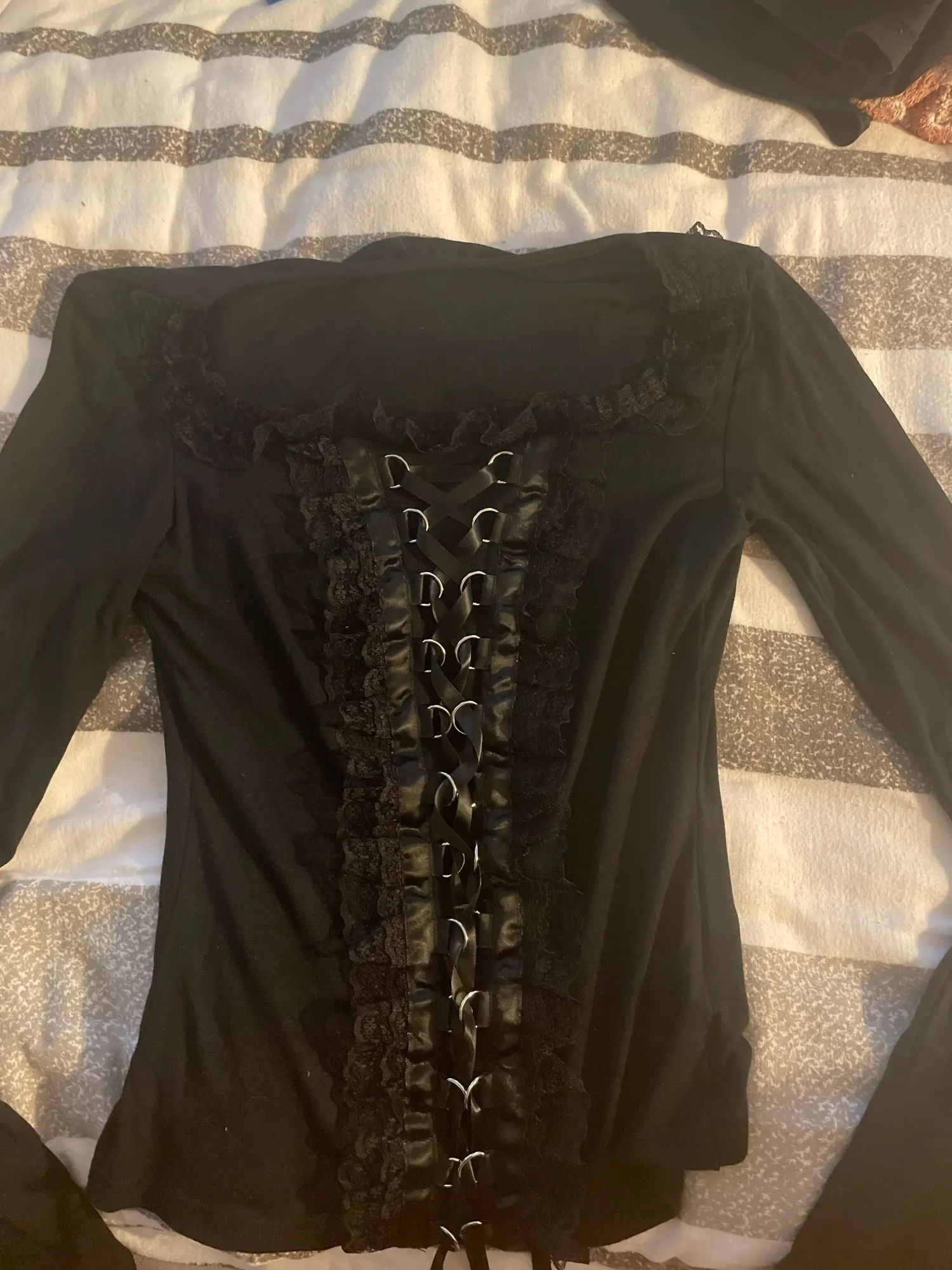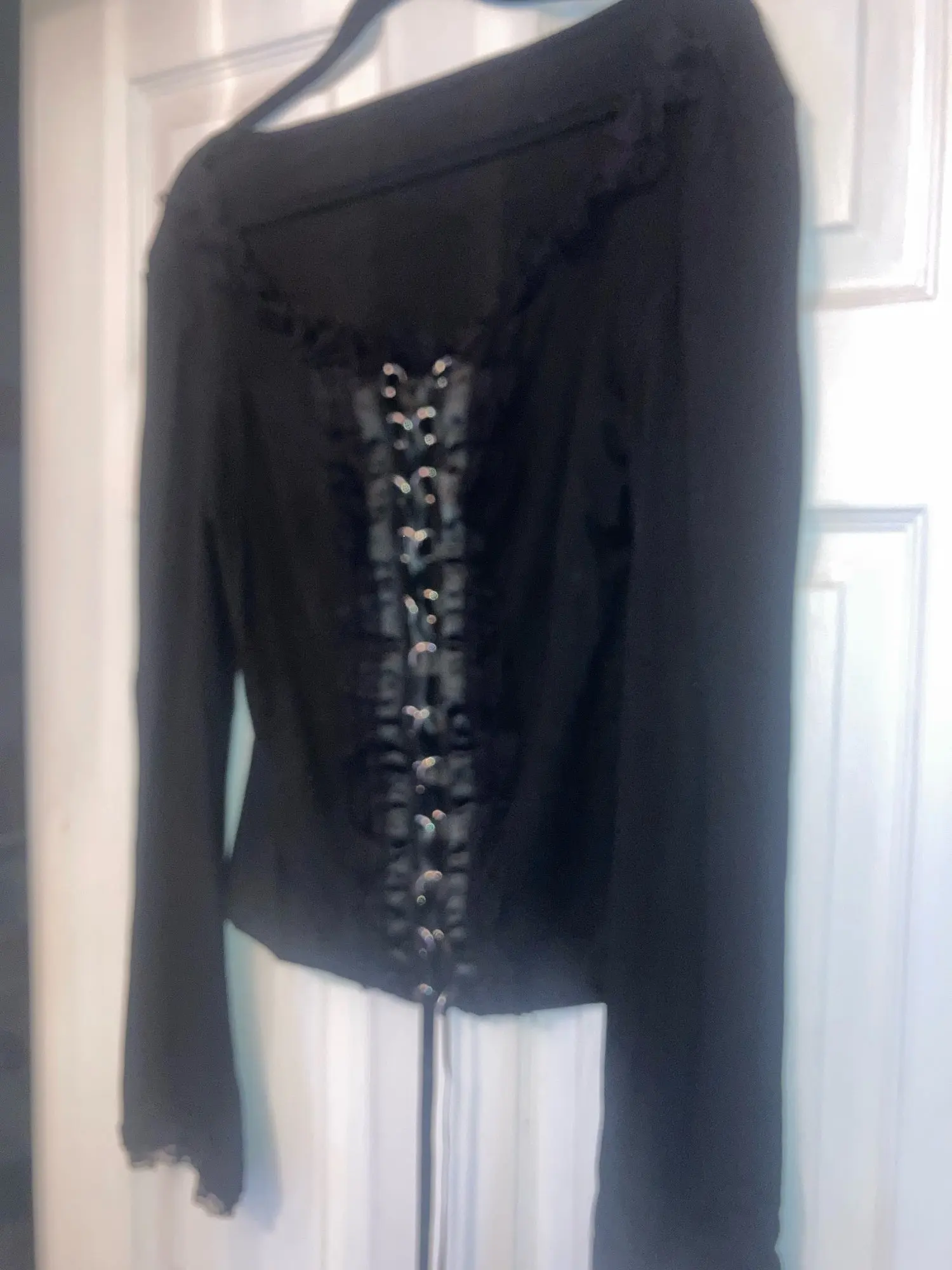20 reviews for Goth Black Lace Trim Long Sleeve T-Shirts Vintage Sexy Lace-up Square Collar Tops with Choker Cross Women Autumn Tees