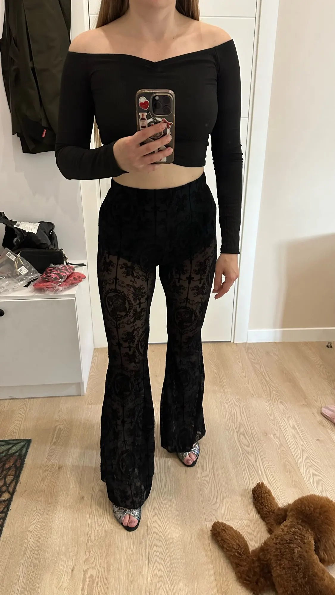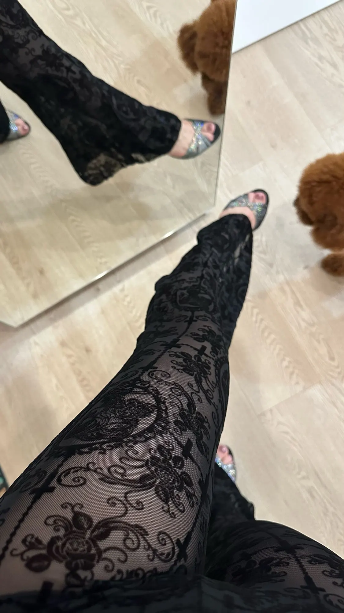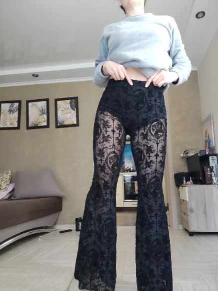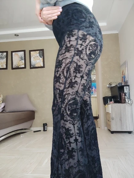 11 reviews for Goth Dark Vintage Flocking Mall Gothic Sexy Flare Pants Grunge See Through Mesh High Waist Women Trousers Punk Slim Alt Clothing