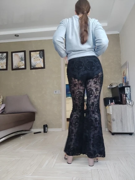 Wonderful pants! They look very nice on wide hips, although I was worried they wouldn’t even fit. The top has an elastic band, so it stretches slightly at the waist without applying pressure, while still looking normal. Also very cool to touch. Thank you!