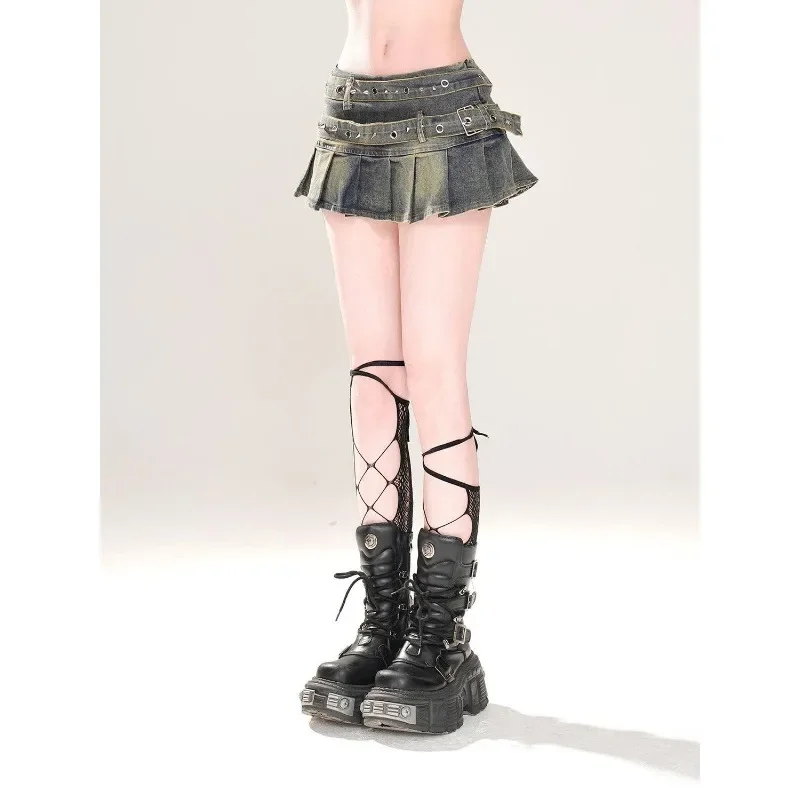 Harajuku solid color grinding white slim sexy casual denim skirts women kawaii Y2K nightclub punk niche design short mini skirts
