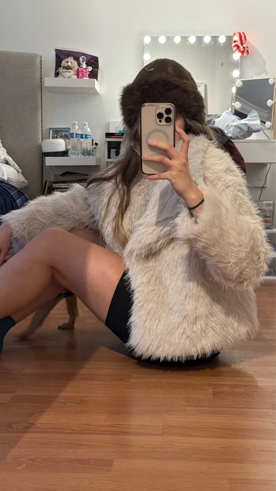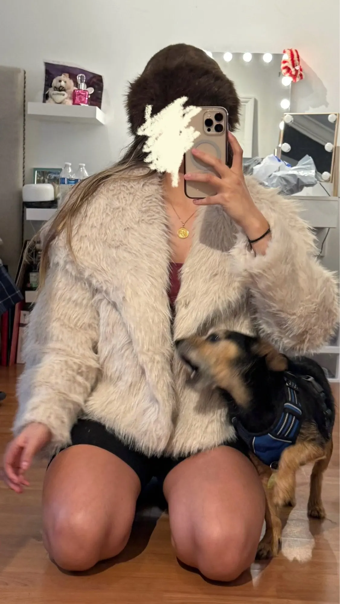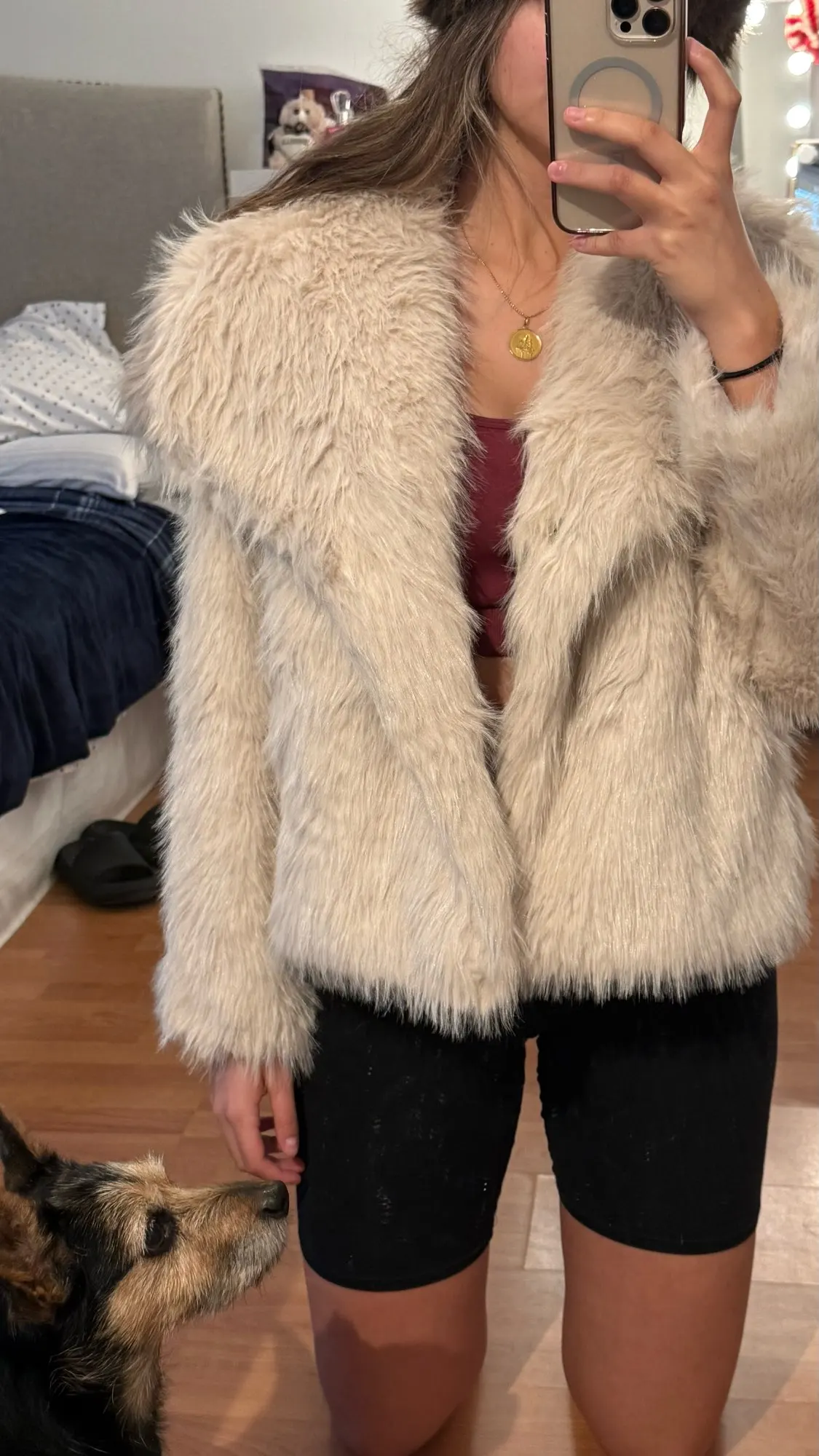 It’s definitely more of a fashion piece than a heavy winter coat — ideal for cold breezes or après-ski outfits with some layering underneath. The material does shed a little, but nothing excessive or messy.