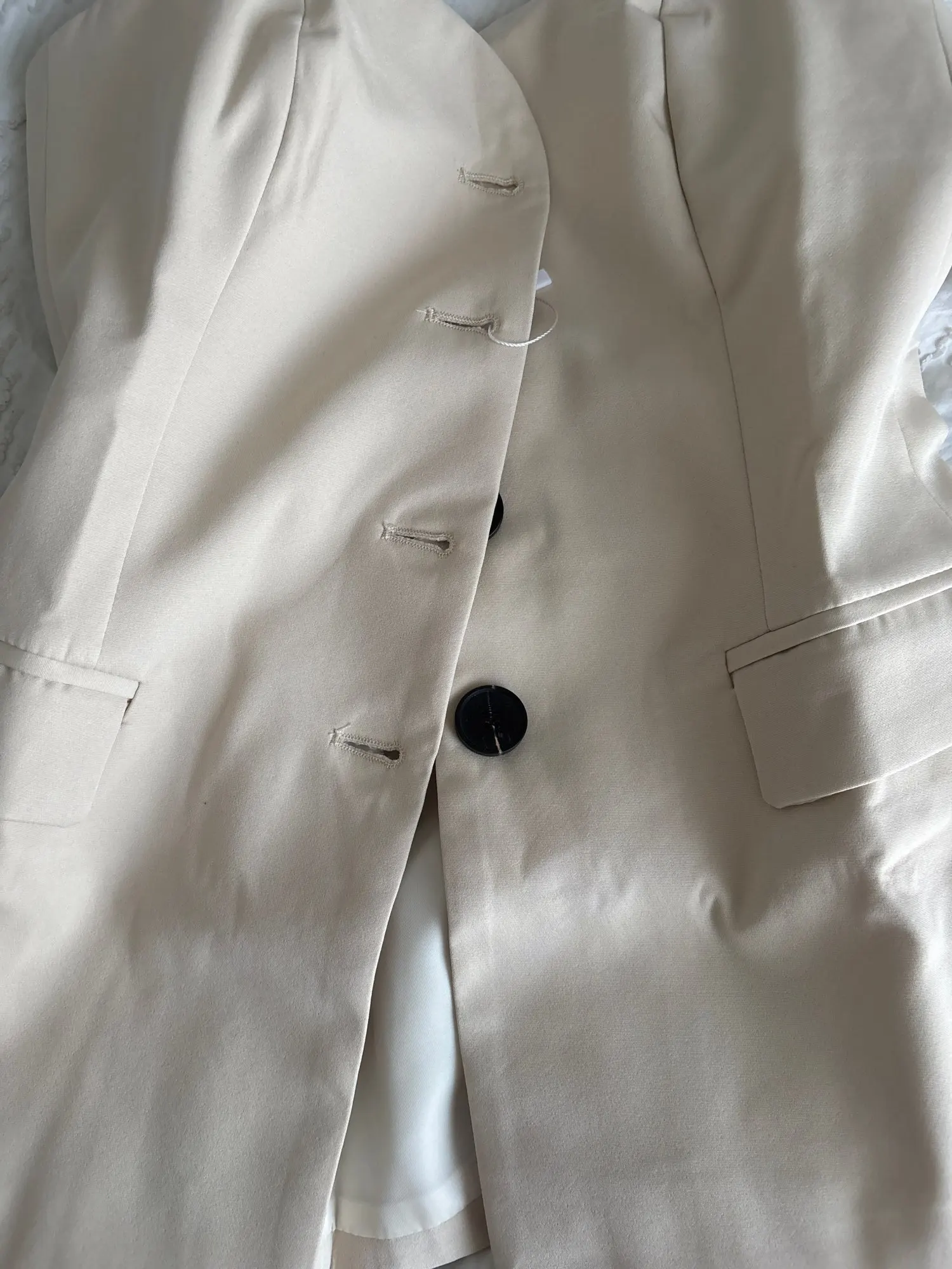 HH Women Elegant Solid Pant Suit Front Button Strapless Sexy Tank Tops + Side Slit Trouser Female Fashion Streetwear Sets