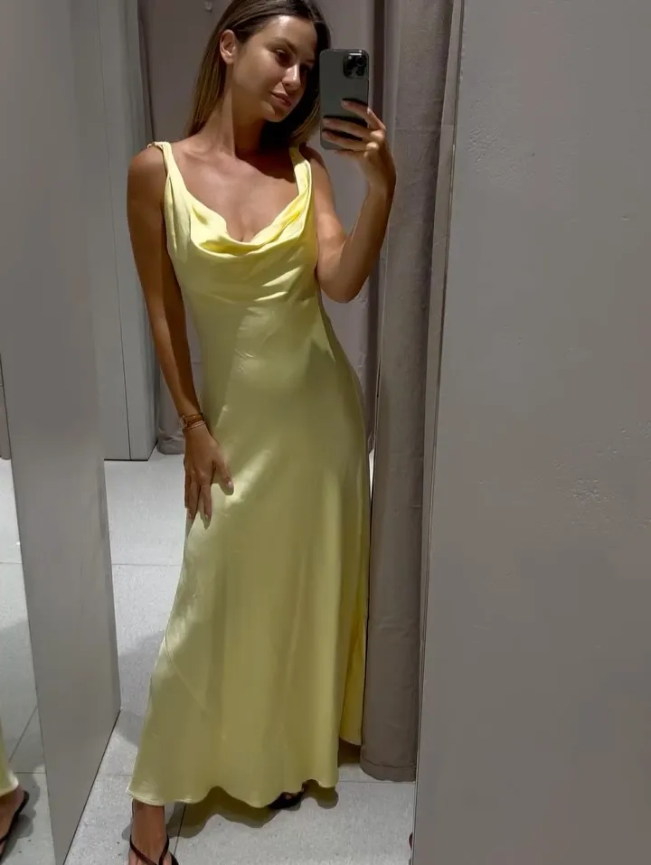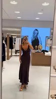 The dress is beautiful, the cut has a great fit on the body. I took size M and it fit perfectly. The shipping was super fast and arrived just in time for the event. I was very happy. It came quite wrinkled, it took some work to iron it out, you have to be careful not to burn the fabric. But it’s very beautiful and elegant. This brown color is perfect.