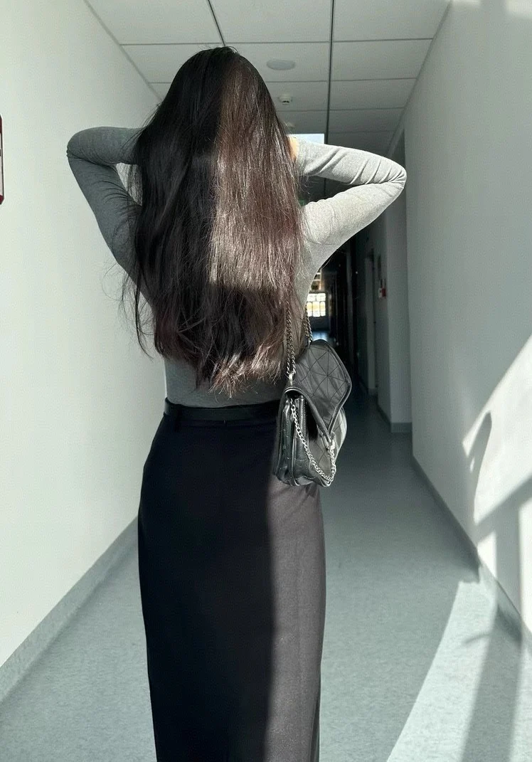 The photo shows a long skirt, but in reality it’s not that long; it’s just below the knee.