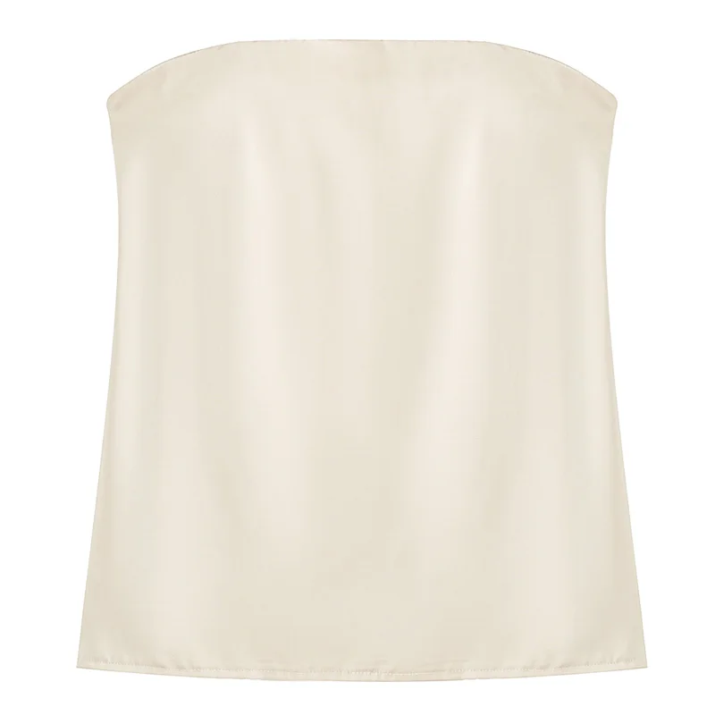 1 review for HXAO 2025 Off White Satin Pant Sets Women’s Suit Off Shoulder Strapless Top Vest Set 2 Piece Woman Chic High Waist Trousers Sets