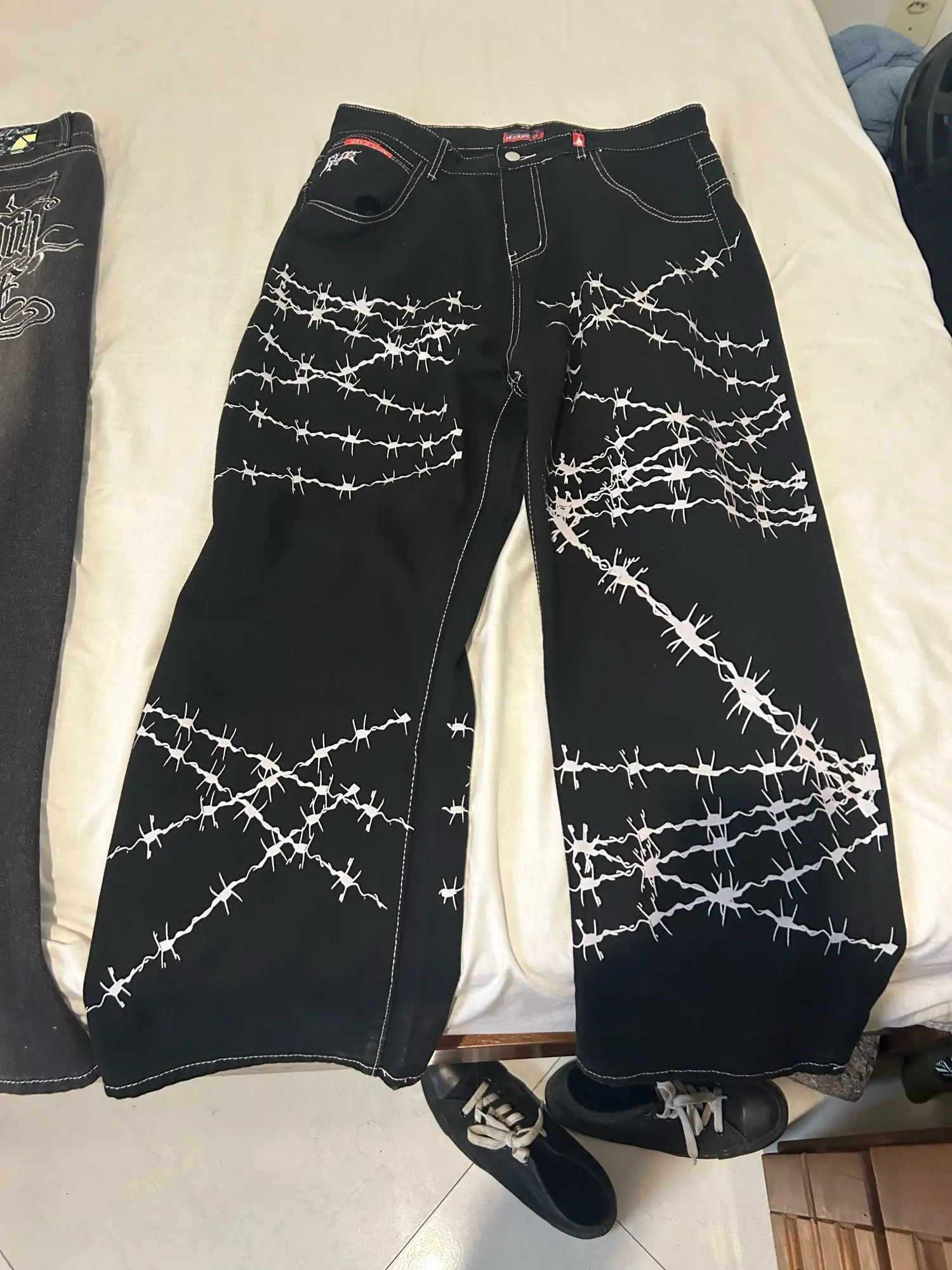 6 reviews for Jeans y2k high street hip hop loose wide-leg casual pants men’s pants jeans street wear printed gothic style trousers hot sale