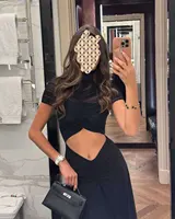 5 reviews for JULISSA MO Sexy Hollow Out Turtleneck Women Maxi Dress Coffee Short Sleeve See Through Mesh Bodycon Elegant Party Evening Dress
