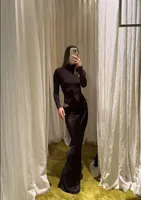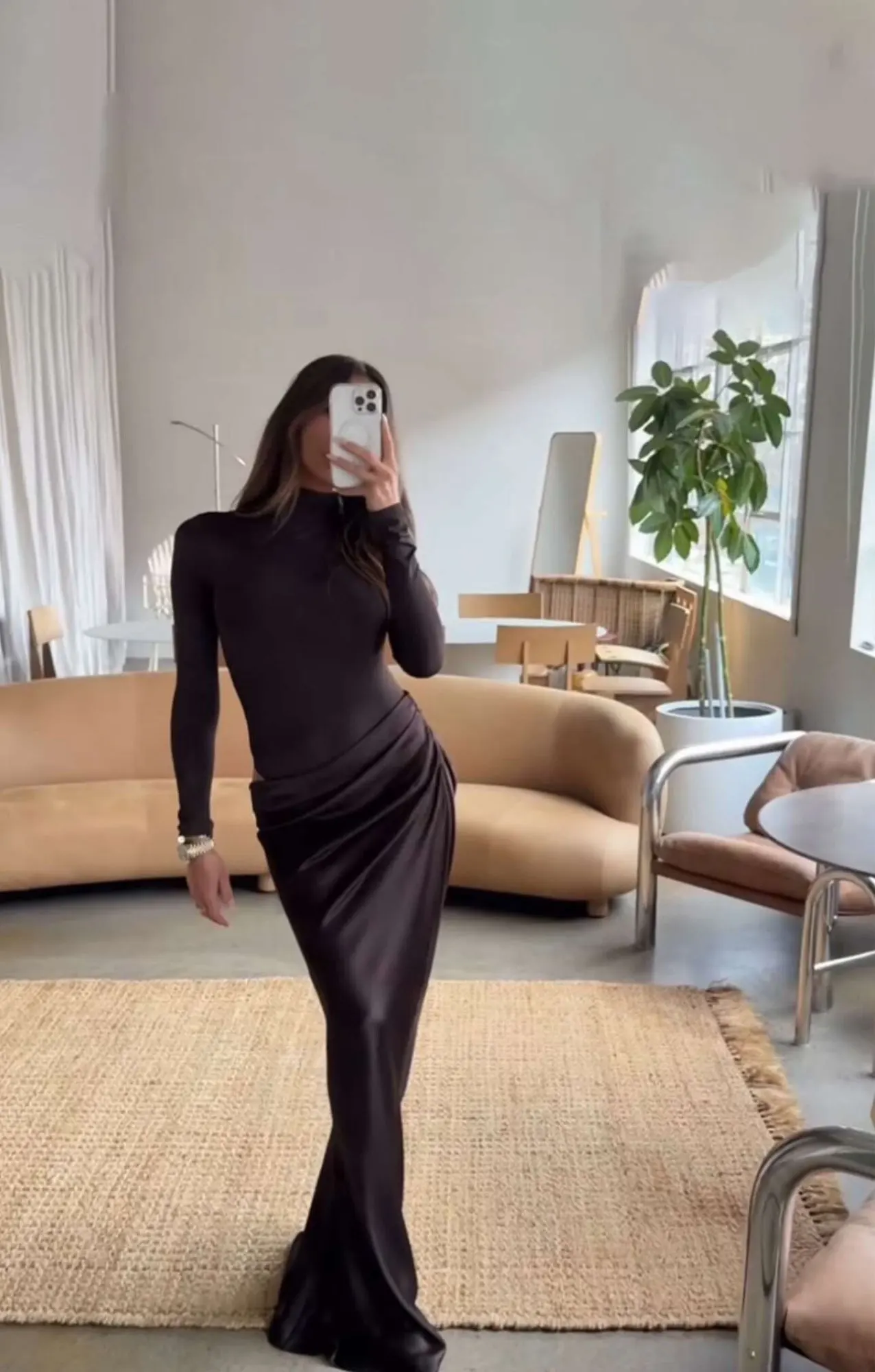 7 reviews for JULISSA MO Turtleneck Satin Sexy Hollow Out Zipper Women Maxi Dress Black Patchwork Long Sleeve Slim Elegant Party Evening Dress