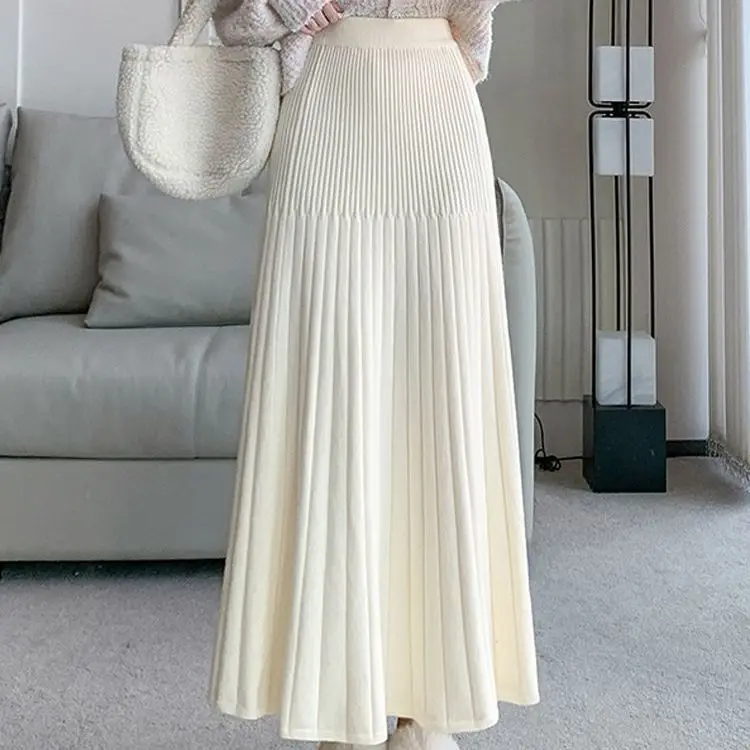 Knitted pleated skirt for women Autumn Winter 2024 new elastic high-waisted slimming A line wrapped buttock fishtail skirt