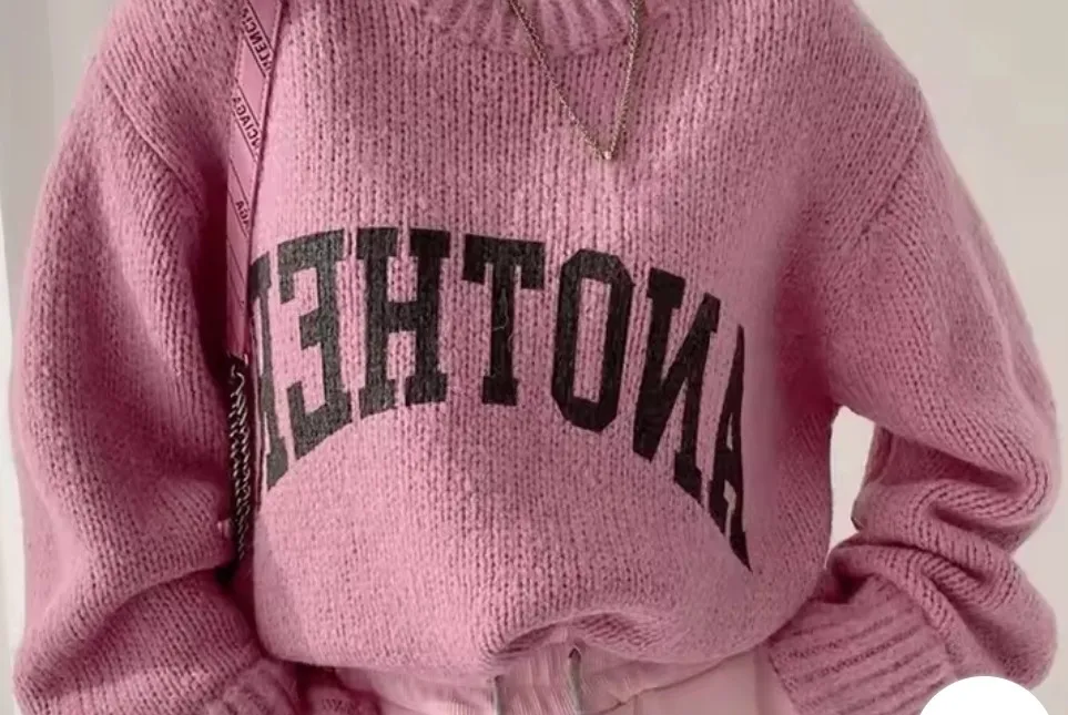 Korean Fashion Autumn and Winter Candy Color Sweater Pullovers for Women Loose Oversized Sweater Letter Knitted Pullovers O Neck