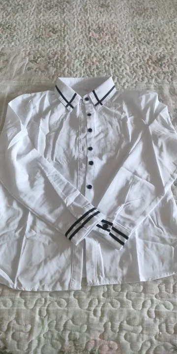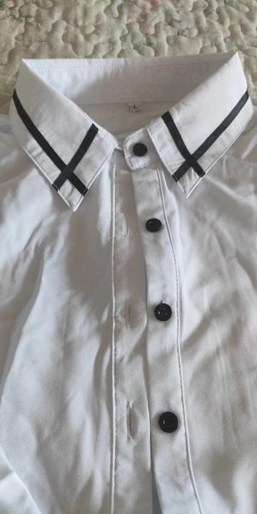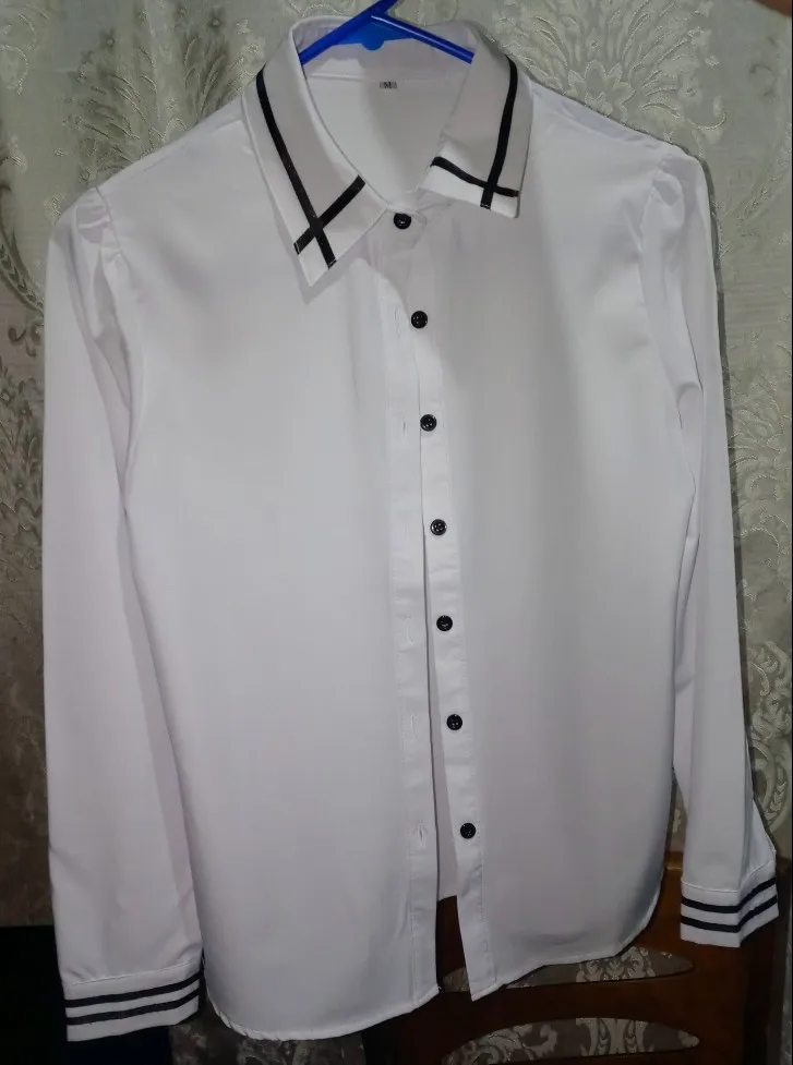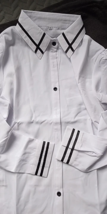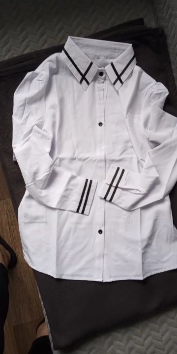 Very nice, elegant blouse with embellishments, the material is easy to iron, snow-white, I recommend it.