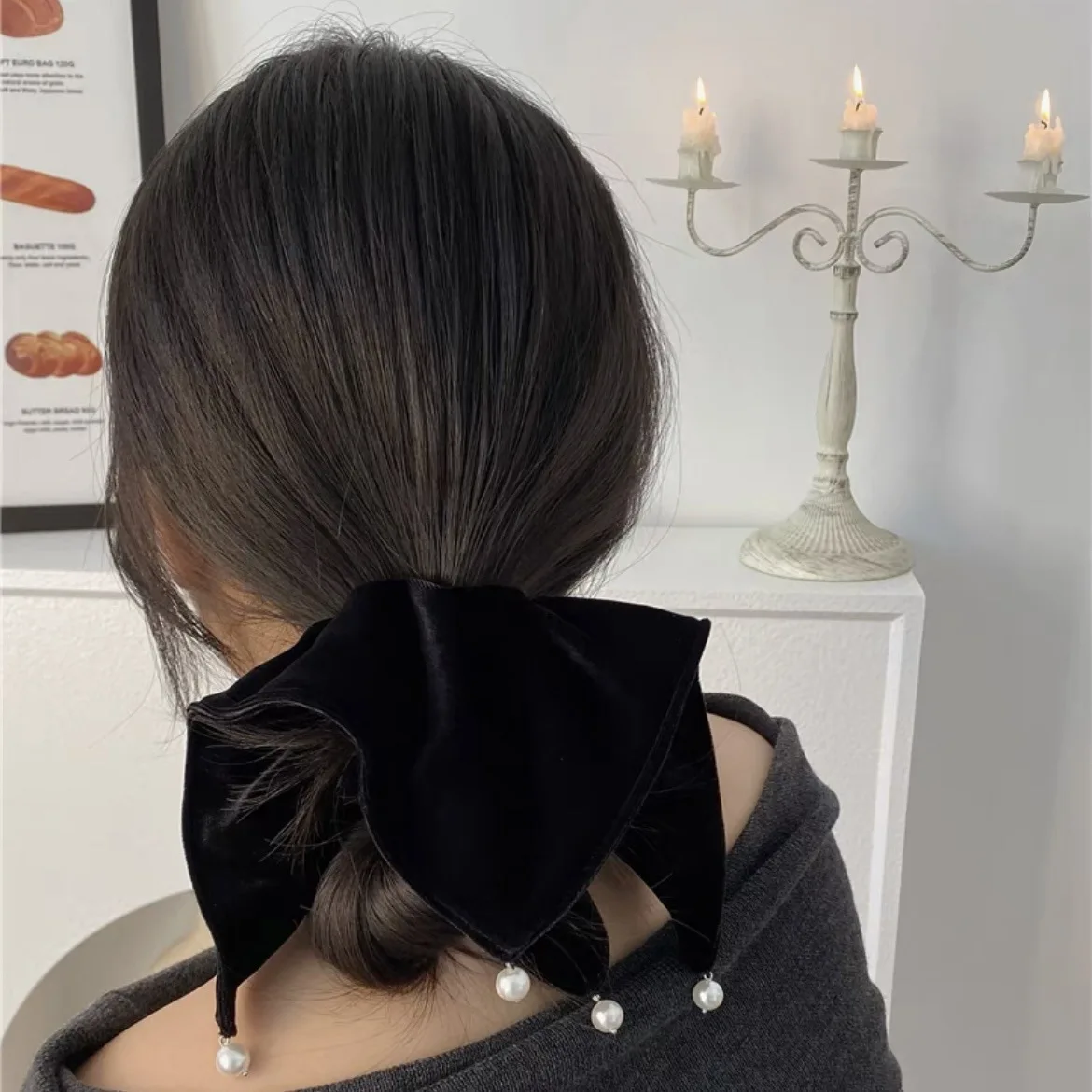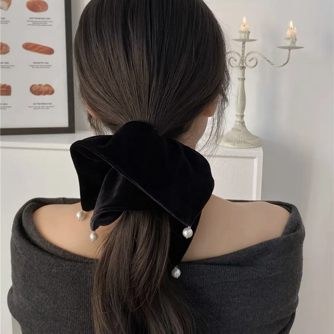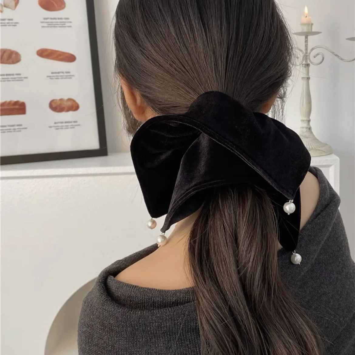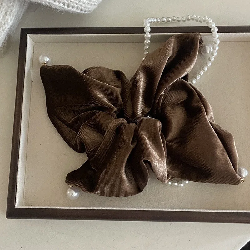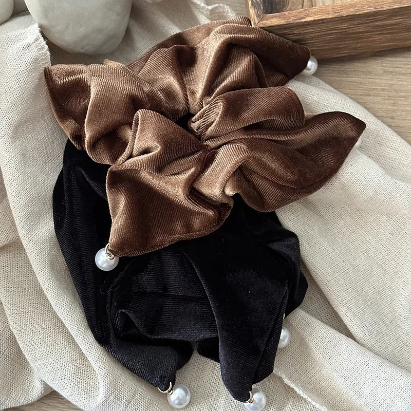Flannel Hairbands Square Pearl Hair Scrunchie Oversized Velvet Elastic Hair Bands For Women Girls Headwear Hair Accessories
