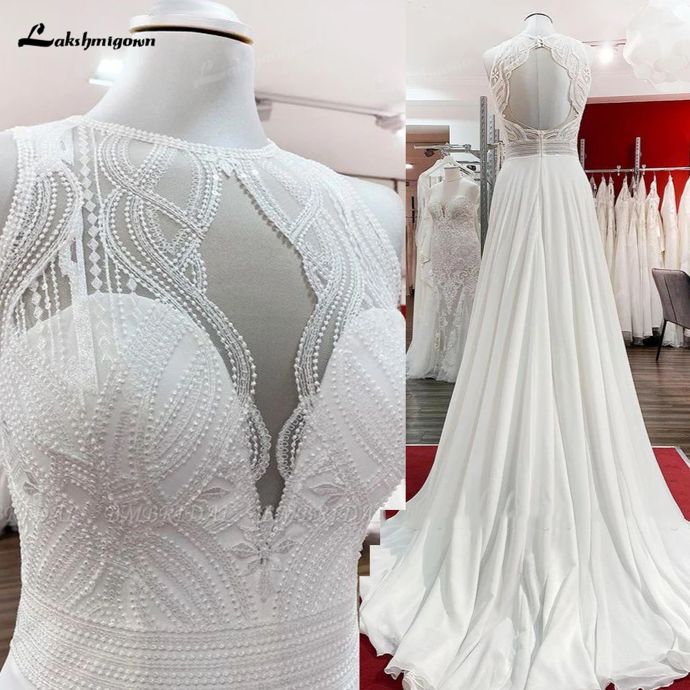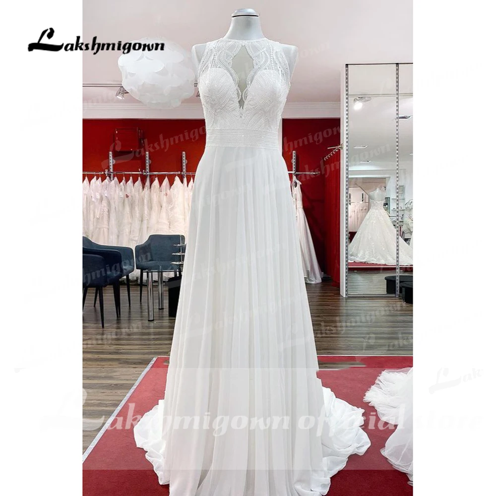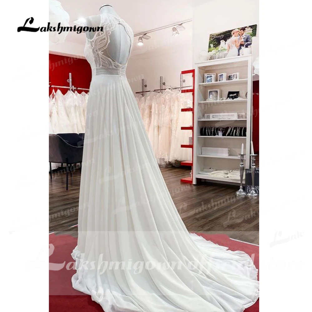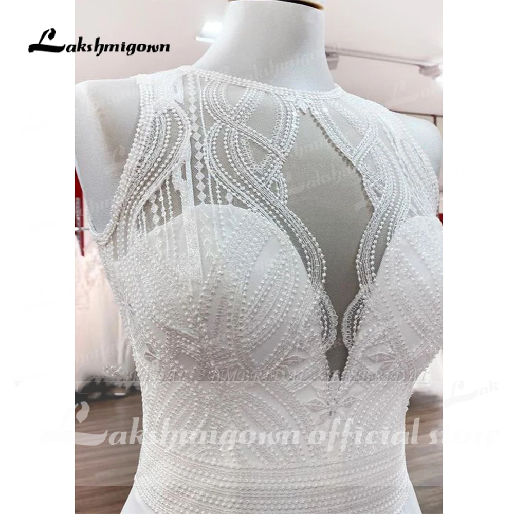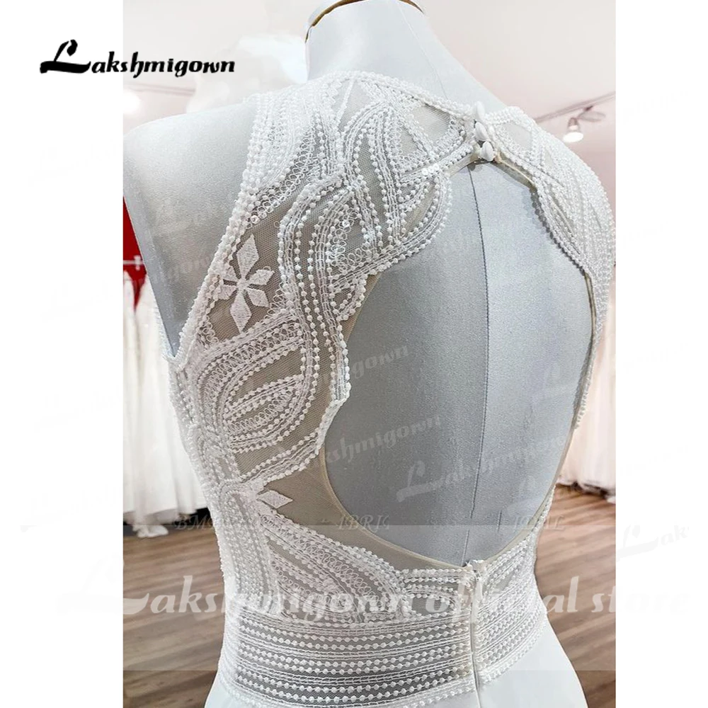 Lakshmigown Chiffon Jewel Ruffles Appliques A-Line Bohemian Wedding Dress Lace Bridal Customized Wedding Gowns Vestidos Noivas
