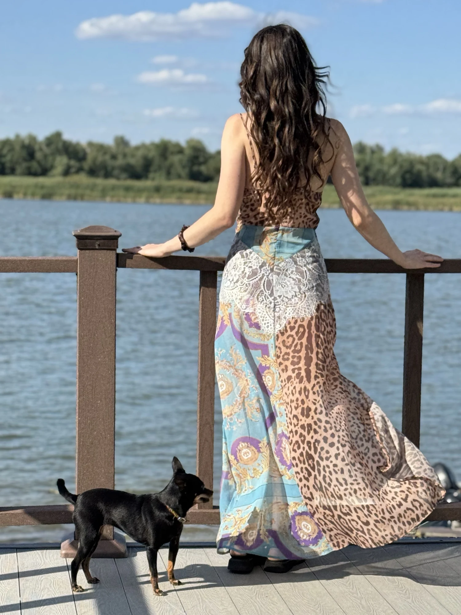 | Model Number | Leopard Printed Patchwork Lace Dress |