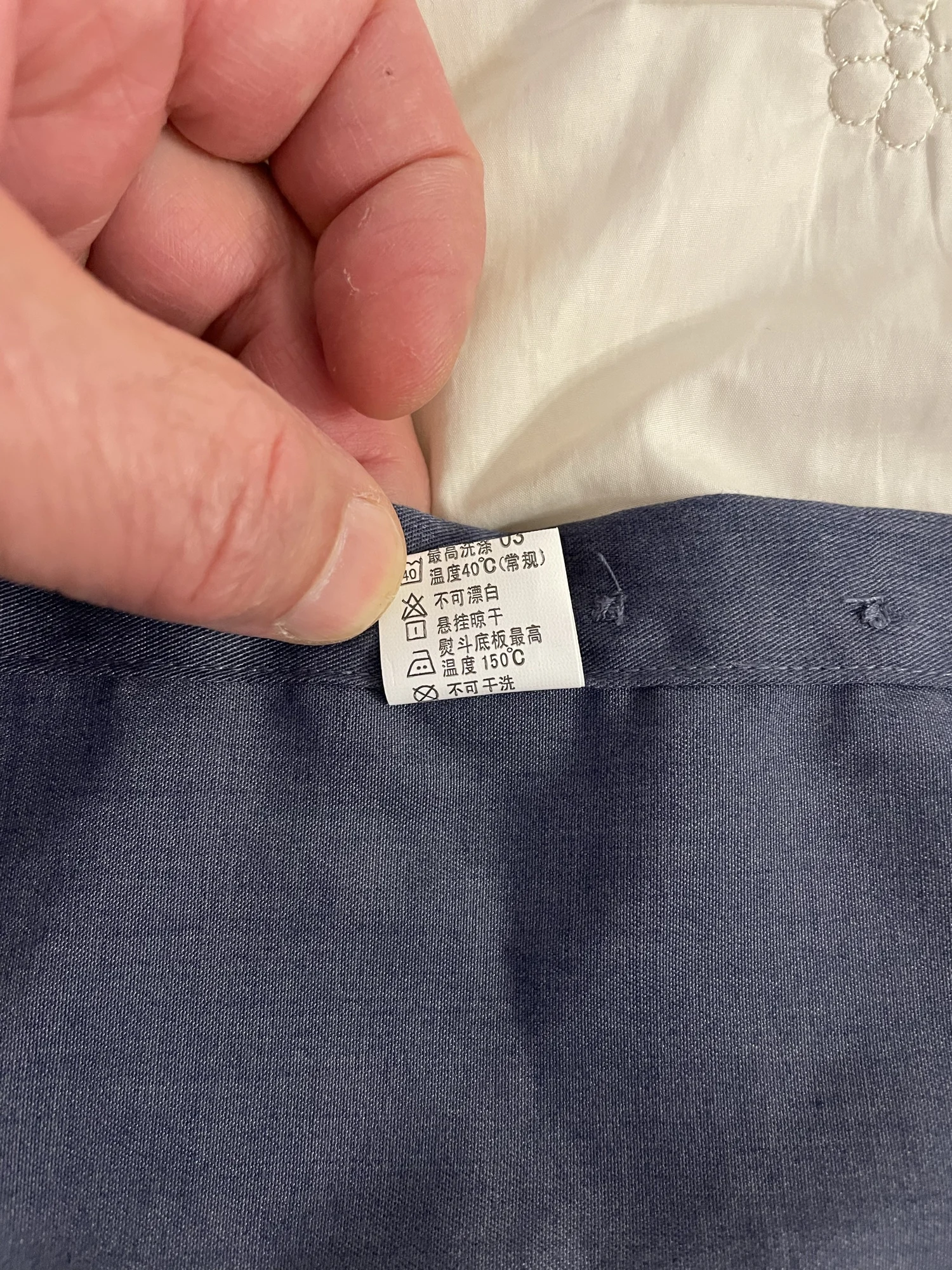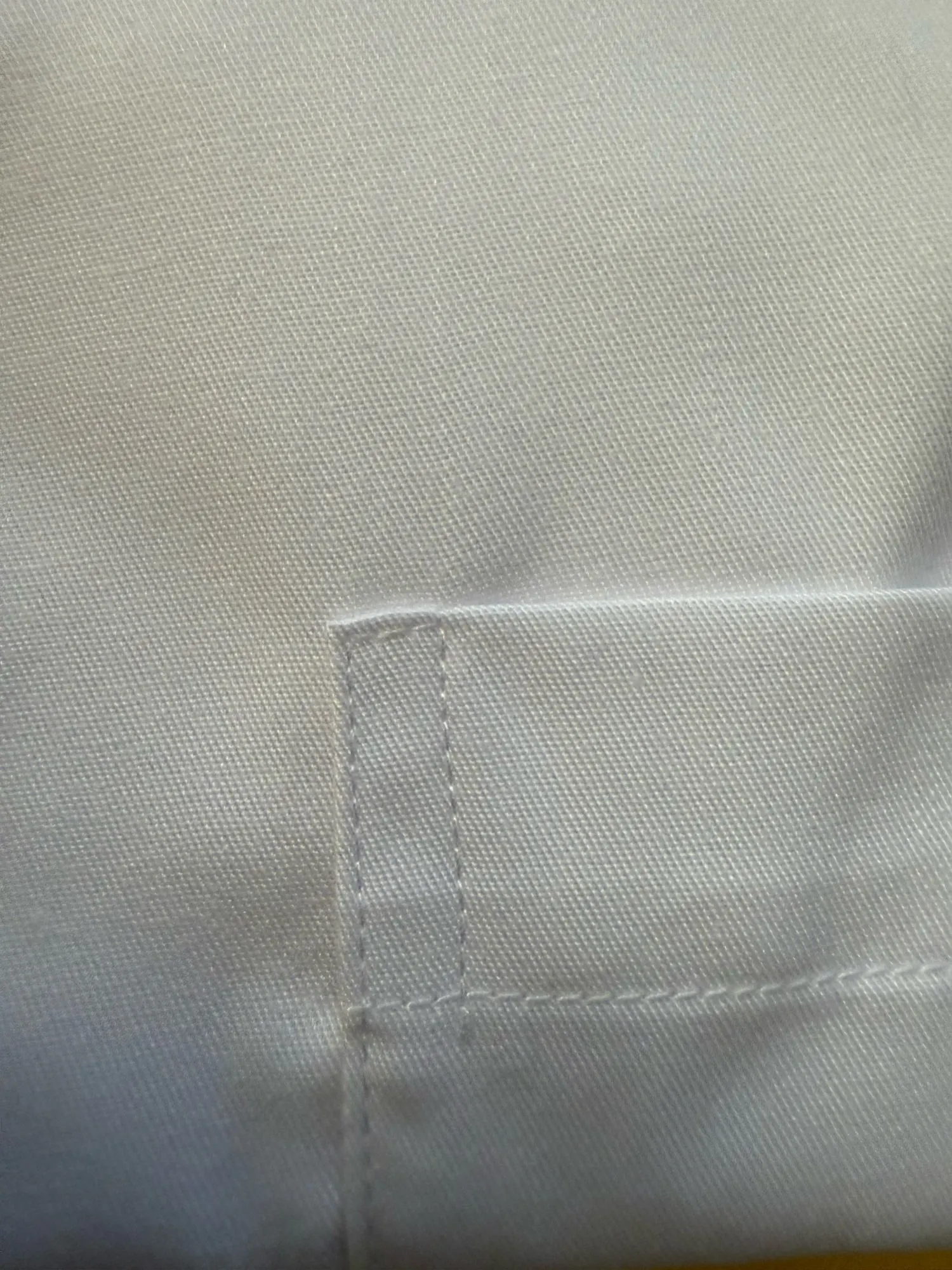 Everything would be fine, but the fabric properties are unclear. Very strange, heavy. It feels like it’s soaked with something. The fabric feels like polyester to the touch and glides smoothly on cotton without sticking. The lines are even and straight.